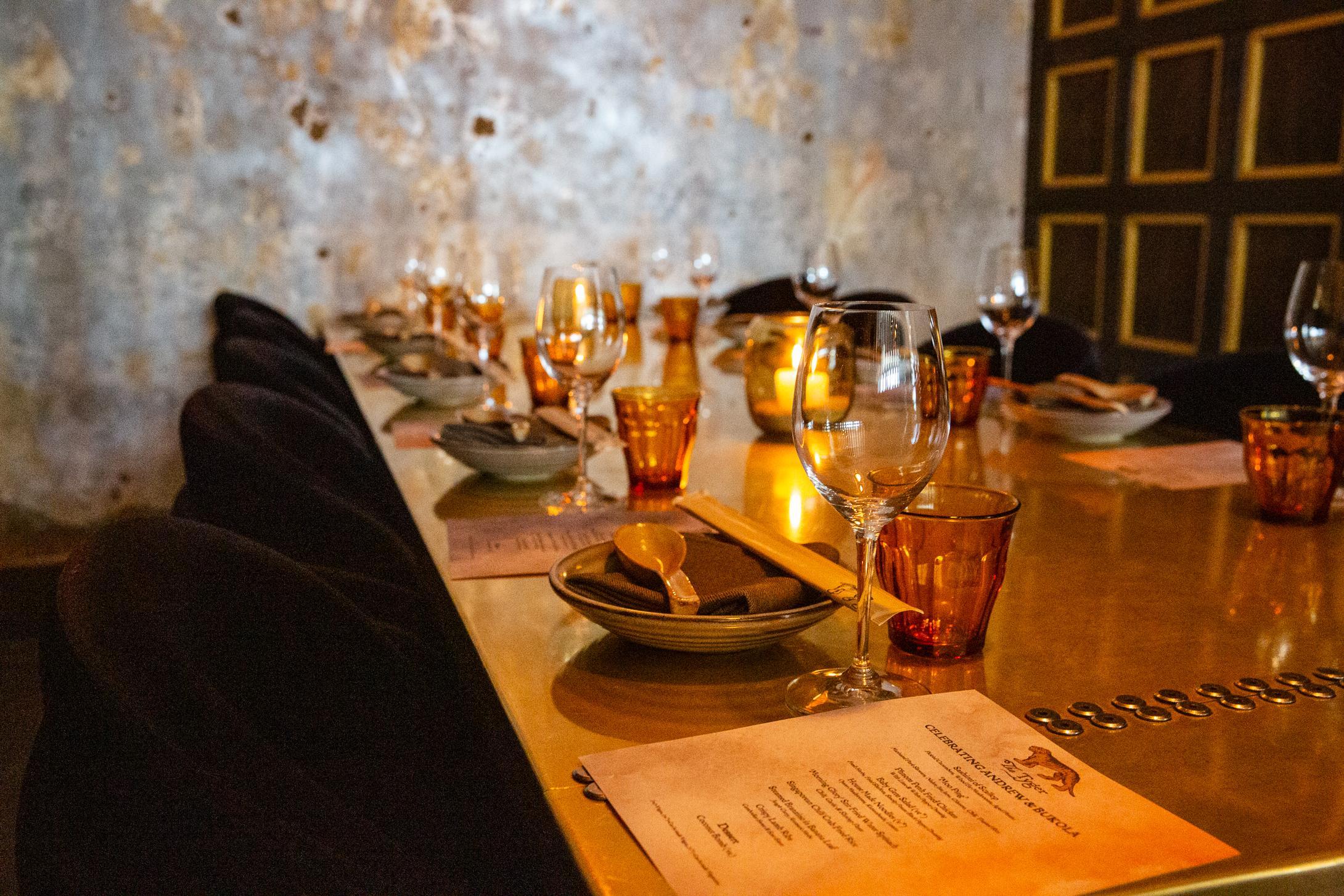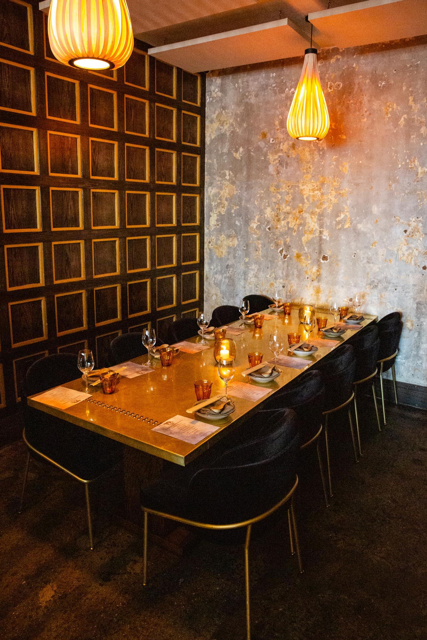 With gold velvet booths around its perimeter, demarcating it from the remainder of the venue- it is ideal for midsize groups who want their own dedicated space and experience whist still enjoying the energy emanating from the Tyger dining room.