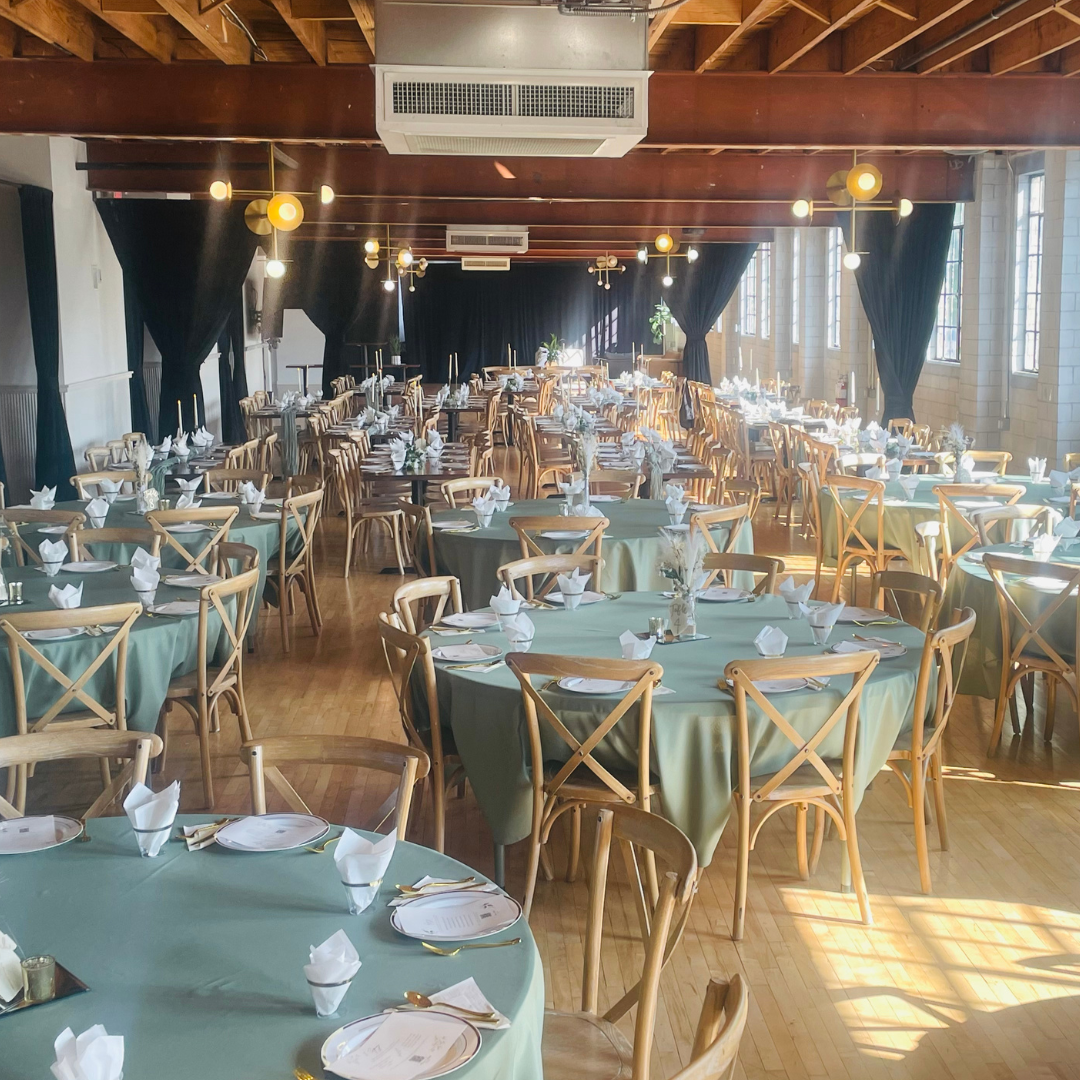 Our Upstairs space is newly renovated with modern amenities while leaving the original vintage charm from when it was a bakery in the 1930s! Our Entire Upstairs room rental rate ranges from $2,500-$7,000 depending on your date, day of the week, and number of guests. (This means no sneaky fees or unforeseen extra costs for you!) We DO have partial space rentals and small wedding packages (under 75 guests) available to fit most budgets.