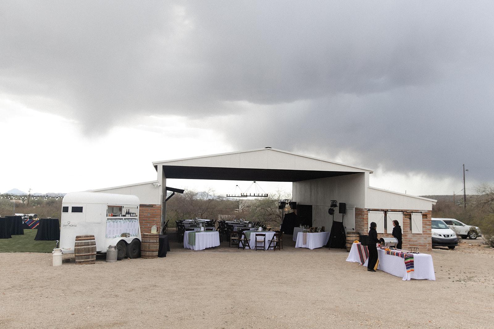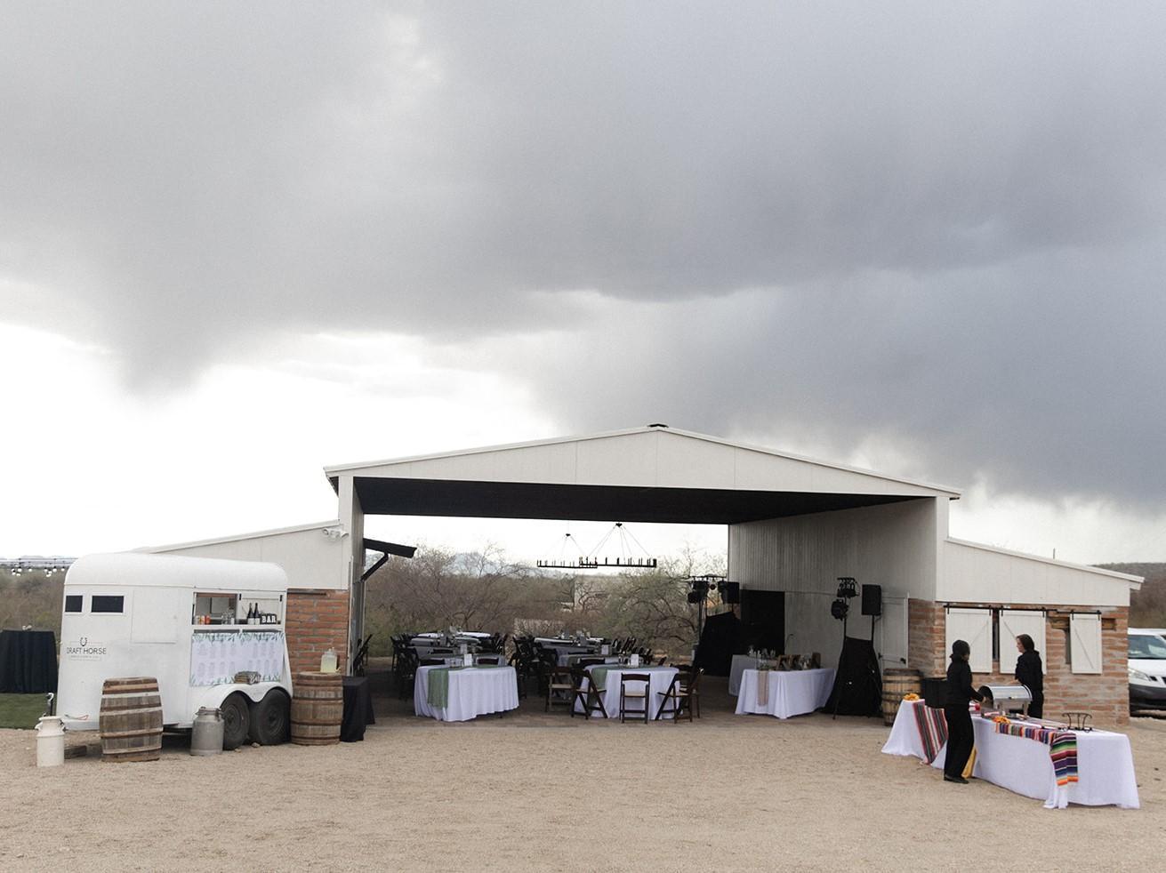 At the base of the stunning Catalina Mountains in the Tanque Verde Valley sits The Urban Ranch, a beautiful Tucson, AZ wedding venue with a rustic, Western vibe. There, couples and guests can enjoy wide-open spaces and laid-back elegance for an unforgettable celebration. The space includes a fountain area, grass/green areas, a barn, a fireplace area, among others that can be use for a reception, ceremony, or cocktail hour.