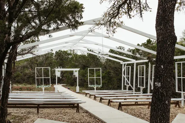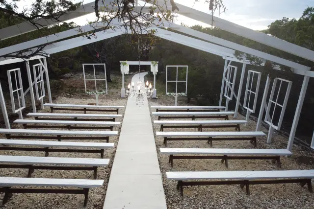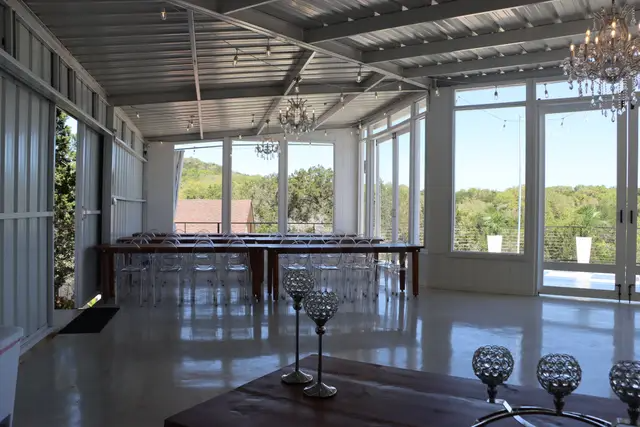 -Hill Country Views -Chandelier Cake Display -Giant & Small Chandeliers -Climate-Controlled -10 Wood Tables -80 Ghost Chairs -Sound System -Wireless Microphones -Bar Space -Dance Floor -Optional Party Lighting System
