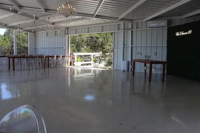 This space is 1500 sqft covered with a beautiful view of the Texas hill country. From a modern, glamorous reception to a rustic, boho-style celebration, the options for your event at The Venue 88 are endless. The venue boasts an expansive outdoor pavilion, ideal for a ceremony and reception under the Texas sunshine. The pavilion can comfortably accommodate up to 125 guests, allowing you to share your day with all your nearest and dearest while still maintaining a cozy and intimate ambiance.
