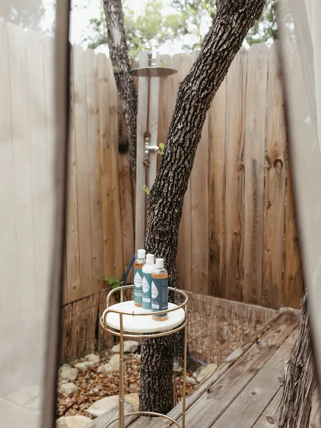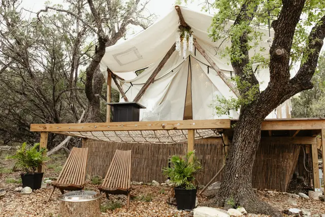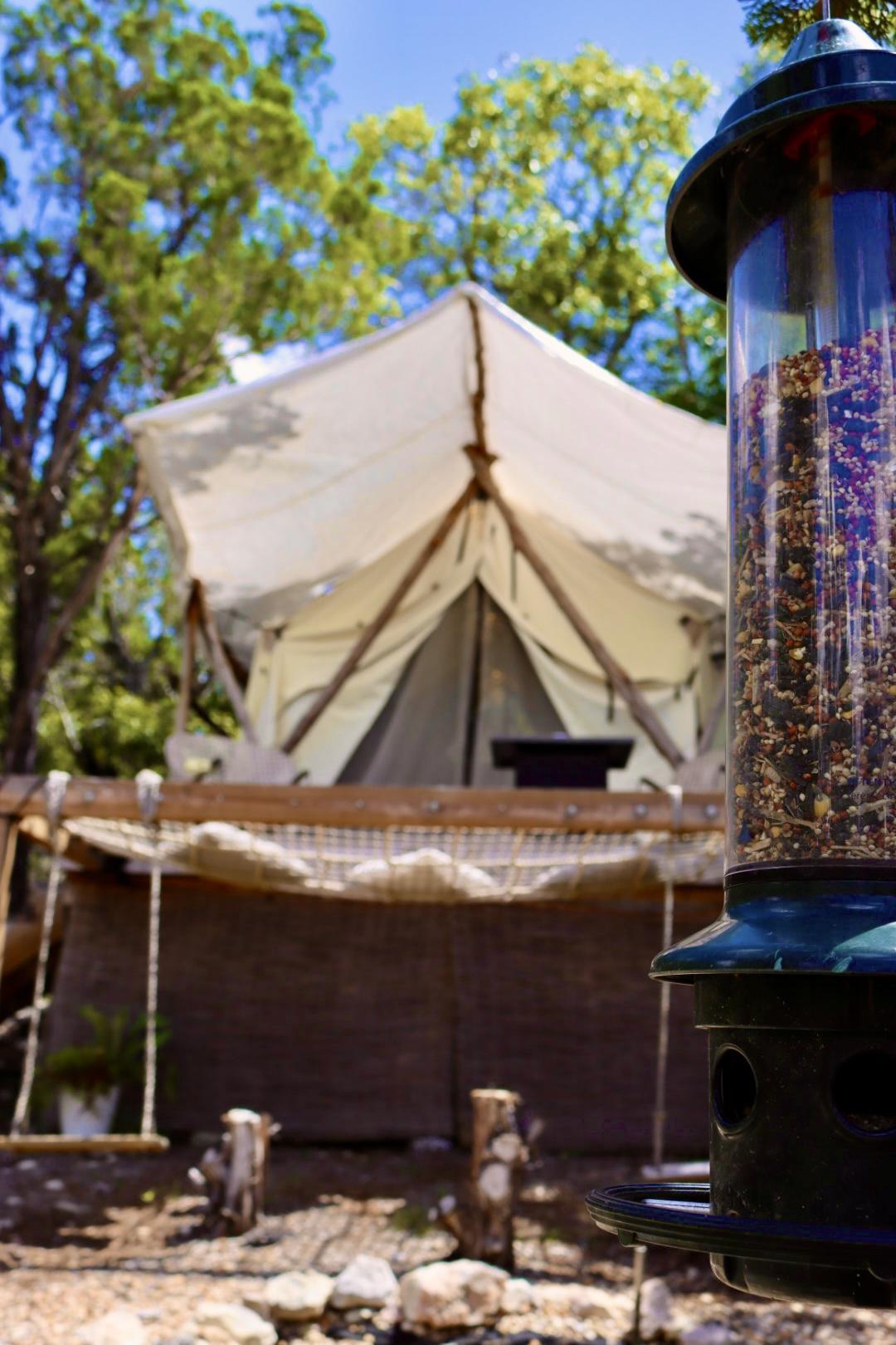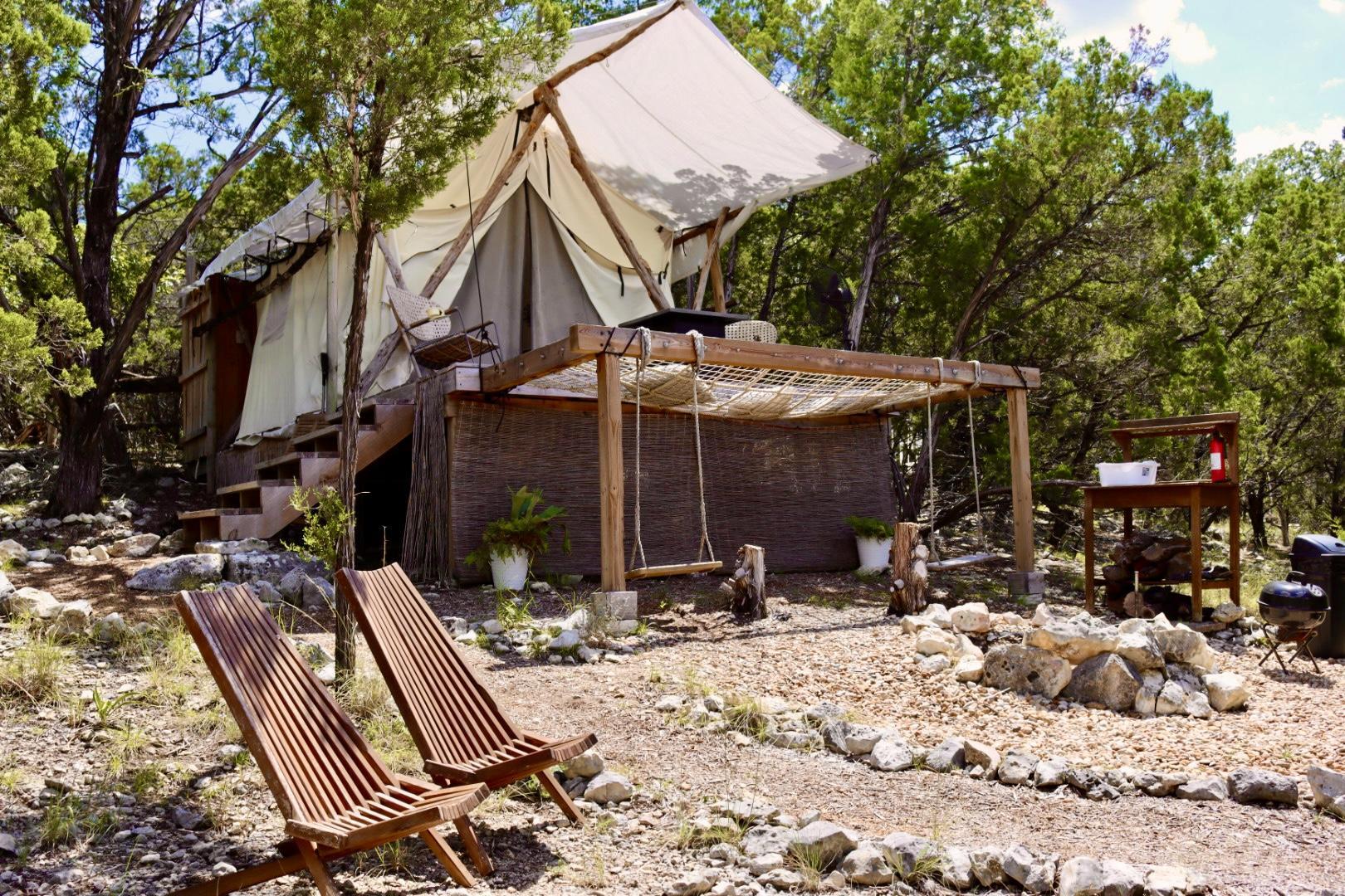 -Wood Burning Stove -AC Unit -WiFi -Luxury Bedding -Throw Blanket -Complimentary Drinks and Snacks -Microwave -Mini Fridge -Outdoor Enclosed Shower -Outdoor Enclosed Sink -Outdoor Enclosed Toilet -Fresh Towels -Earth Friendly Luxury Shampoo, Conditioner, & Body Wash -Full-Length Vanity Mirror -TV -Hill Country Views -Giant Hammock -Campfire Pit