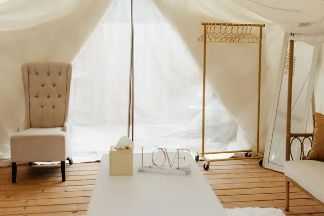 Get Ready for your big day in a unique Glamping Tent steps away from the ceremony area! After a busy day of making memories and an evening of dancing, you, and your beloved can retreat to the luxurious on-site accommodation for a relaxing overnight stay.