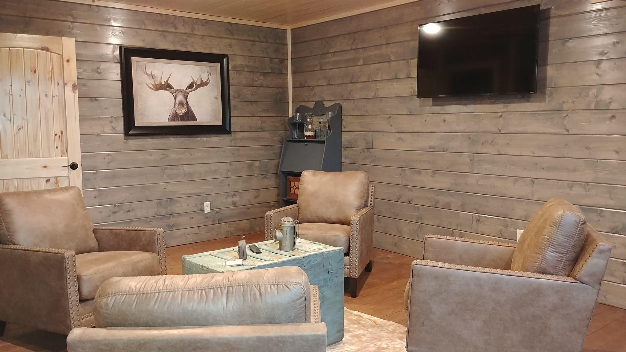 - Cozy leather cushion chairs -Smart TV. Mini beverage fridge. Bring your Playstation/XBox Games and system