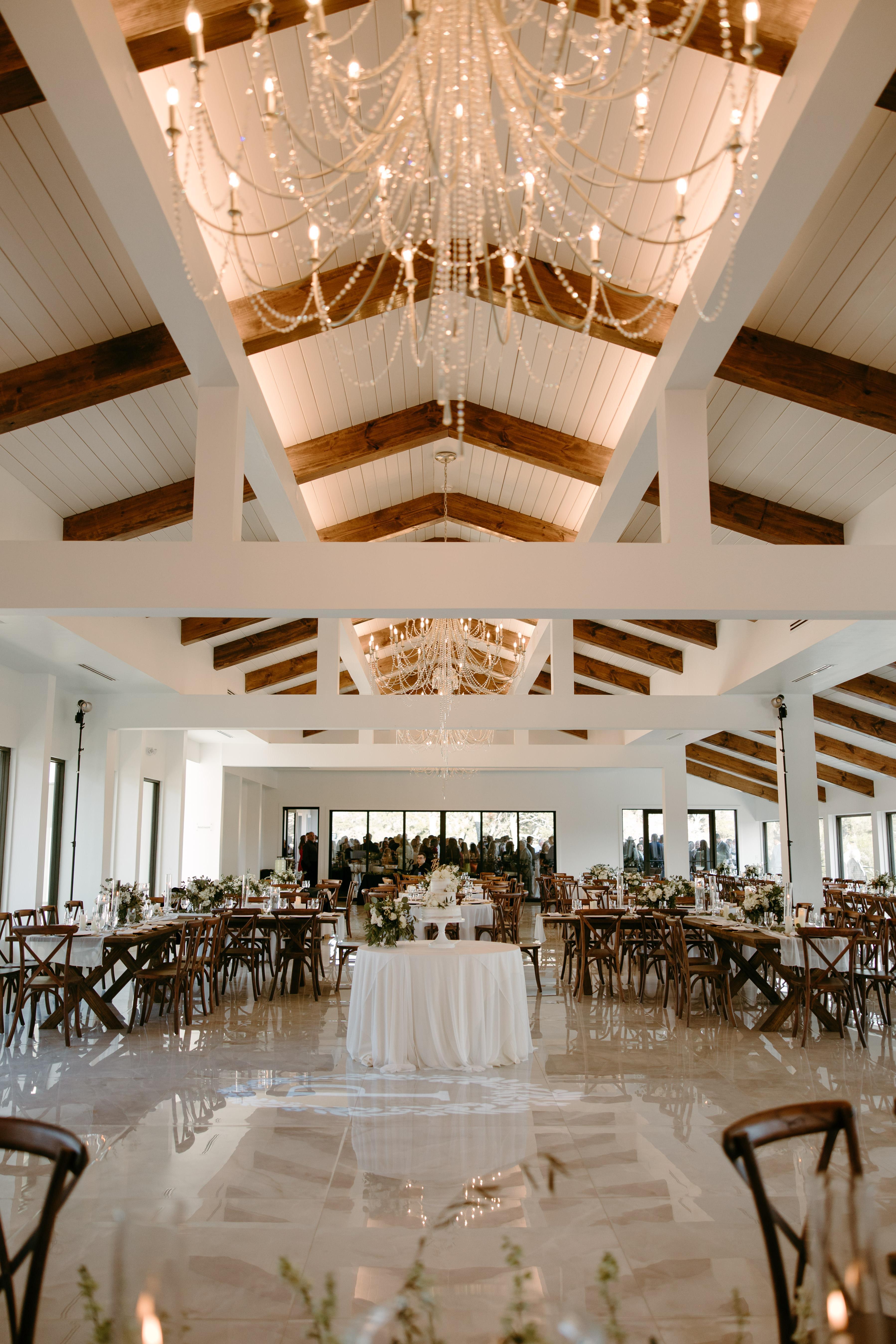 - 4 dimmable chandeliers - built in bar - 3 garage doors that open up allowing for an indoor/outdoor experience - a prep kitchen - a game room/the 'groom's room' - lounge space
