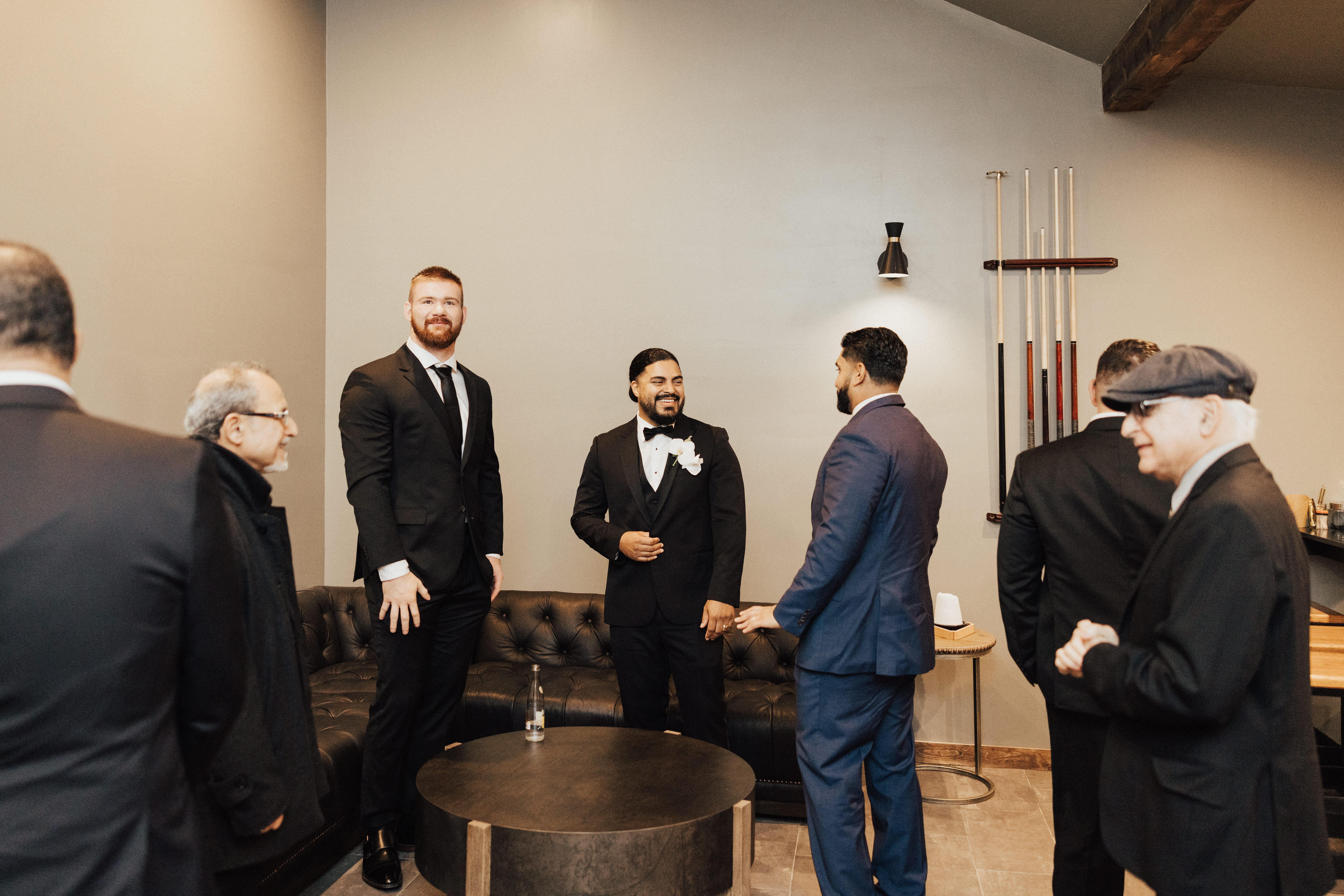 - pool table / shuffleboard - tv - getting ready space - bathroom with shower - stocked mini fridge with complimentary beers and soft drinks - lounge space