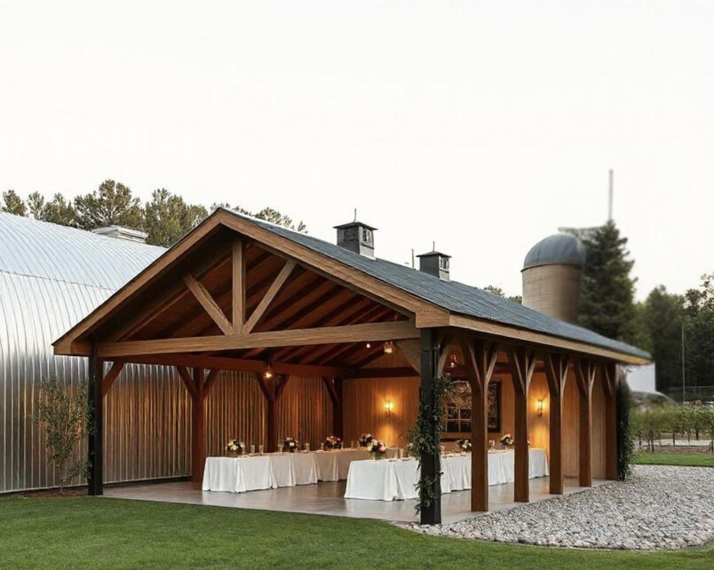 The Vine is thrilled to announce the opening of The Pavilion in 2026, a stunning new outdoor space perfect for unforgettable weddings. This breathtaking wooden pavilion offers covered seating for up to 500 guests, shielding you from the elements while immersing you in the vines and nature's beauty. With its own bar and dance floor, The Pavilion provides everything you need for a truly magical celebration.