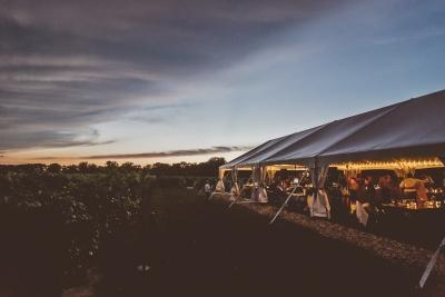 The tented venue at The Vineyard is situated in the middle of a 115 acre estate surrounded by the scenery and fragrance of multiple varieties of wine grapes. The location on the property offers serenity and seclusion without sacrificing the comforts of a more traditional wedding venue. Both a wedding ceremony and reception can be held onsite.