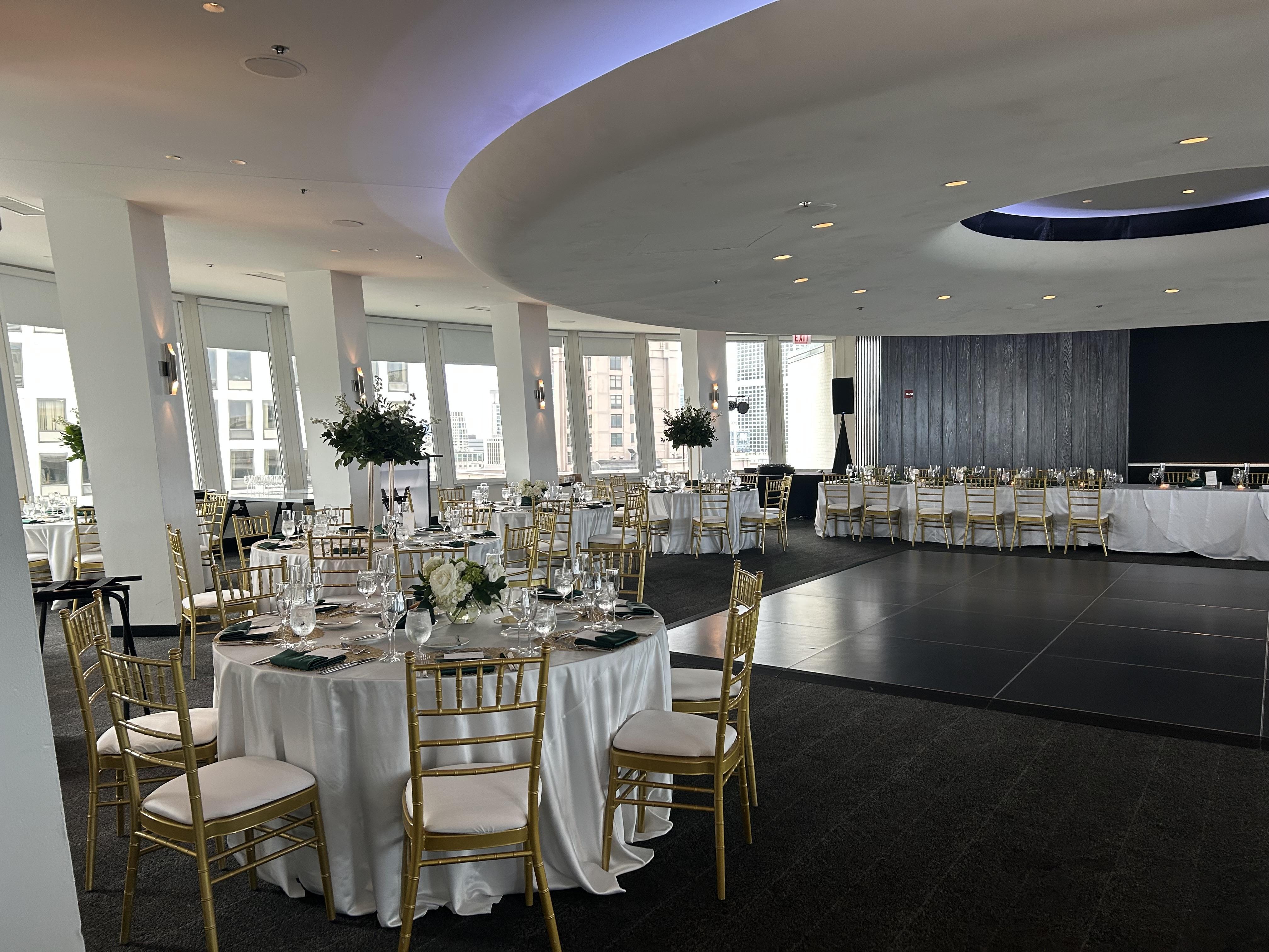 Glide out for your first dance as a newlywed couple in our stunning venue. Towering 33 floors above Lake Michigan and showcasing 360-degree views throughout, Altitude is the perfect space for a stylish celebration. From simple and sleek décor, extraordinary sips and bites, gorgeous views, and more, see what The Wade Hotel can do for your wedding celebration.