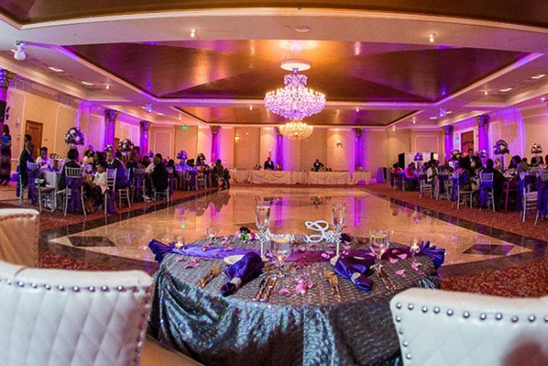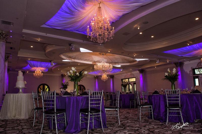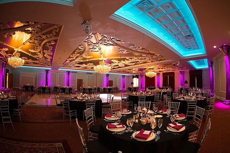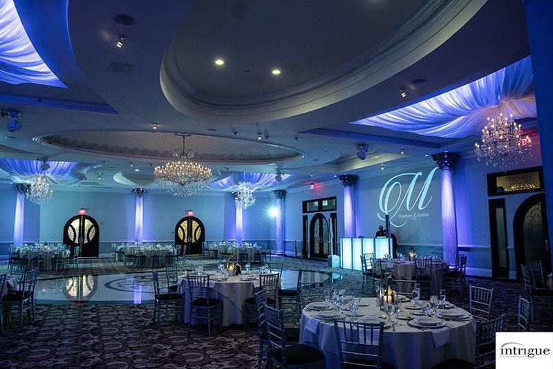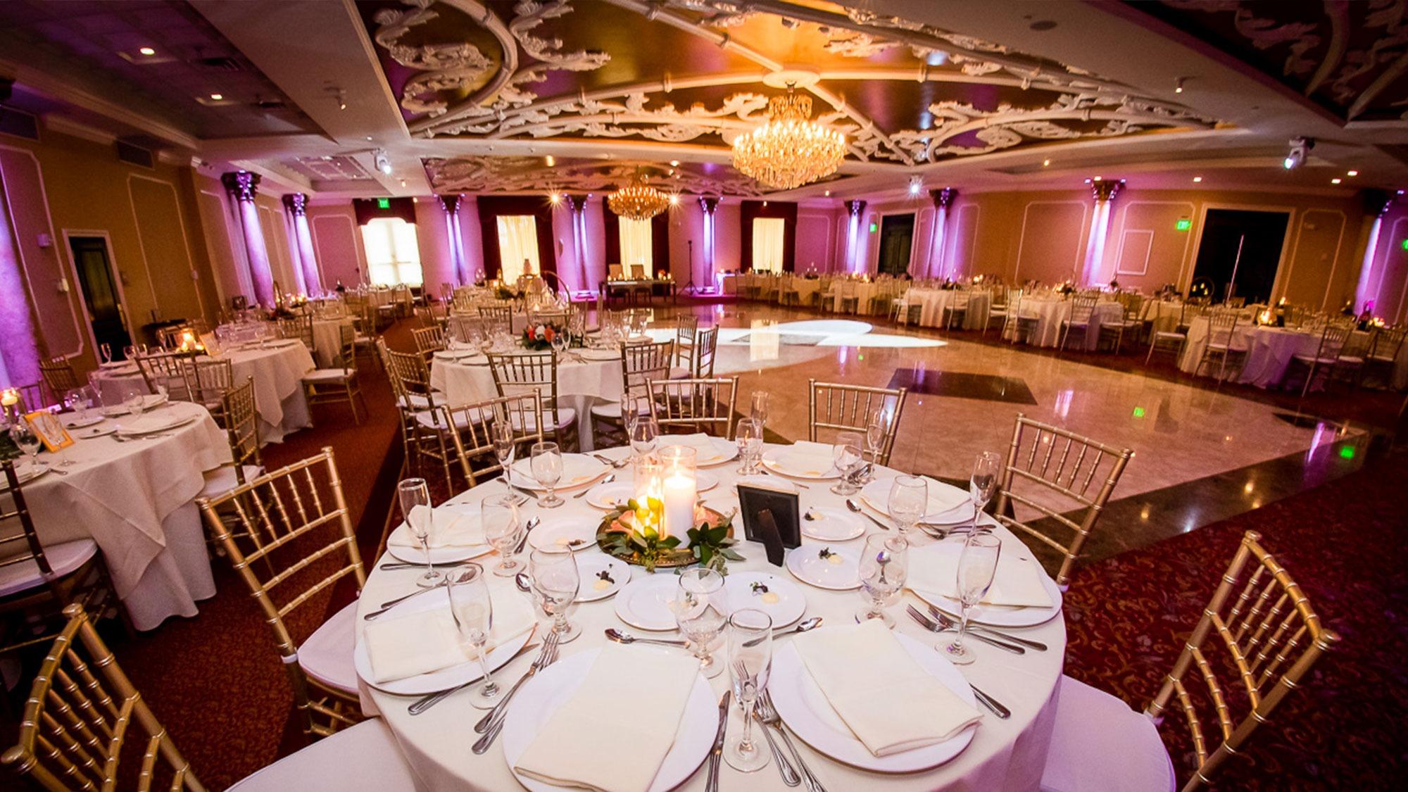 Ideal for events up to 500 guests, the Grand Ballroom features 14-foot ceilings, towering Roman Corinthian marble columns, crystal chandeliers, and an 1,100 square foot marble dance floor. Intelligent lighting accents the ceilings, columns, and dance floor, which can be customized for every event. Use of the Grand Ballroom Patio with our signature waterfall is included.