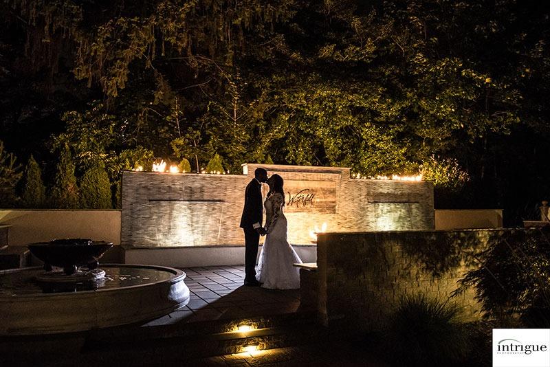 From the marble water fountains, columns, gazebo and breathtaking bridge, The Waterfall is the most elegant setting in the region for ceremonies, receptions and wedding photography. As you leave the outside allure, you and your guests will be led through arched French doors to a rotunda that features an exquisite handmade blown-glass chandelier. Past the rotunda is the cocktail room, where guests can enjoy cocktails and freshly-prepared cuisine. This area features 18-foot ceilings, an endless skylight, and a glowing onyx stone wall behind the bar. Between these three spaces, up to 500 guests will experience a distinctive ceremony uniquely built like no other.
