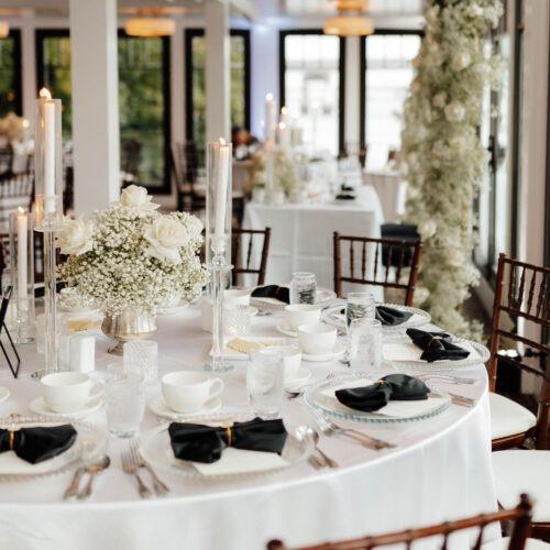 A setting just as dramatic as it is romantic; the Riverview Room is the ideal space for wedding receptions, private parties or formal functions. Located on the lower level, the Riverview Room boasts spectacular views of the Seekonk River. Two sides of floor to ceiling windows drape the room providing stunning eye-level views of the water, while beautiful brick floors anchor the room. An abundance of natural light during the day and intimate lighting at night provides a welcoming atmosphere for any event. Our bar and lounge area is adjacent to the Riverview Room and is a perfect spot for cocktail receptions prior to dining. The Riverview Room offers ample space for formal functions while still maintaining an intimate atmosphere that can accommodate up to 120 guests for a sit-down event. For cocktail parties, the Riverview Room can accommodate groups up to 150 guests while offering limited seating.