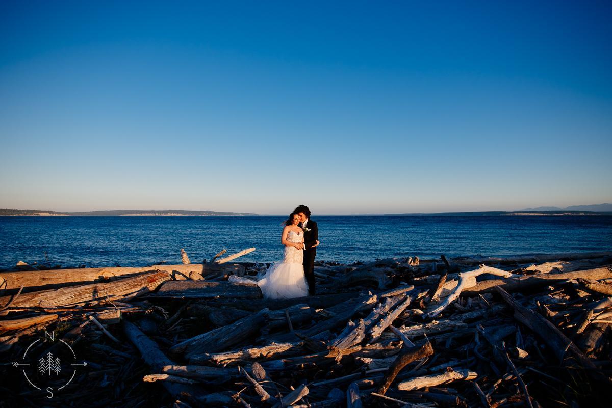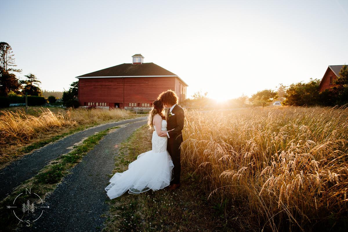 2 Beautiful Venues: Wayfarer can accommodate 100 guests and includes all set up, break down, wedding coordination, tables, chairs, and tents. The venue has a garden party feel with an orchard which makes an incredible natural canopy of trees for our long farm tables to go under for the reception. Lots of really big trees and different garden areas, so there are plenty of sites for a beautiful outdoor ceremony. There are 2 getting ready spaces. There is an indoor space for an intimate ceremony or an outdoor ceremony site and an additional indoor/outdoor space for cocktail hour which has a bar inside of it. Crockett Farm is a historic, 11-acre farm from 1895 and features amazing water views from the ceremony site as well as sweeping territorial vistas. The large barn, complete with original timbers, is the perfect place to accommodate your Whidbey Island wedding and reception for up to 200 guests. On-site guest house available (for an additional fee), sleeps up to 12 guests.