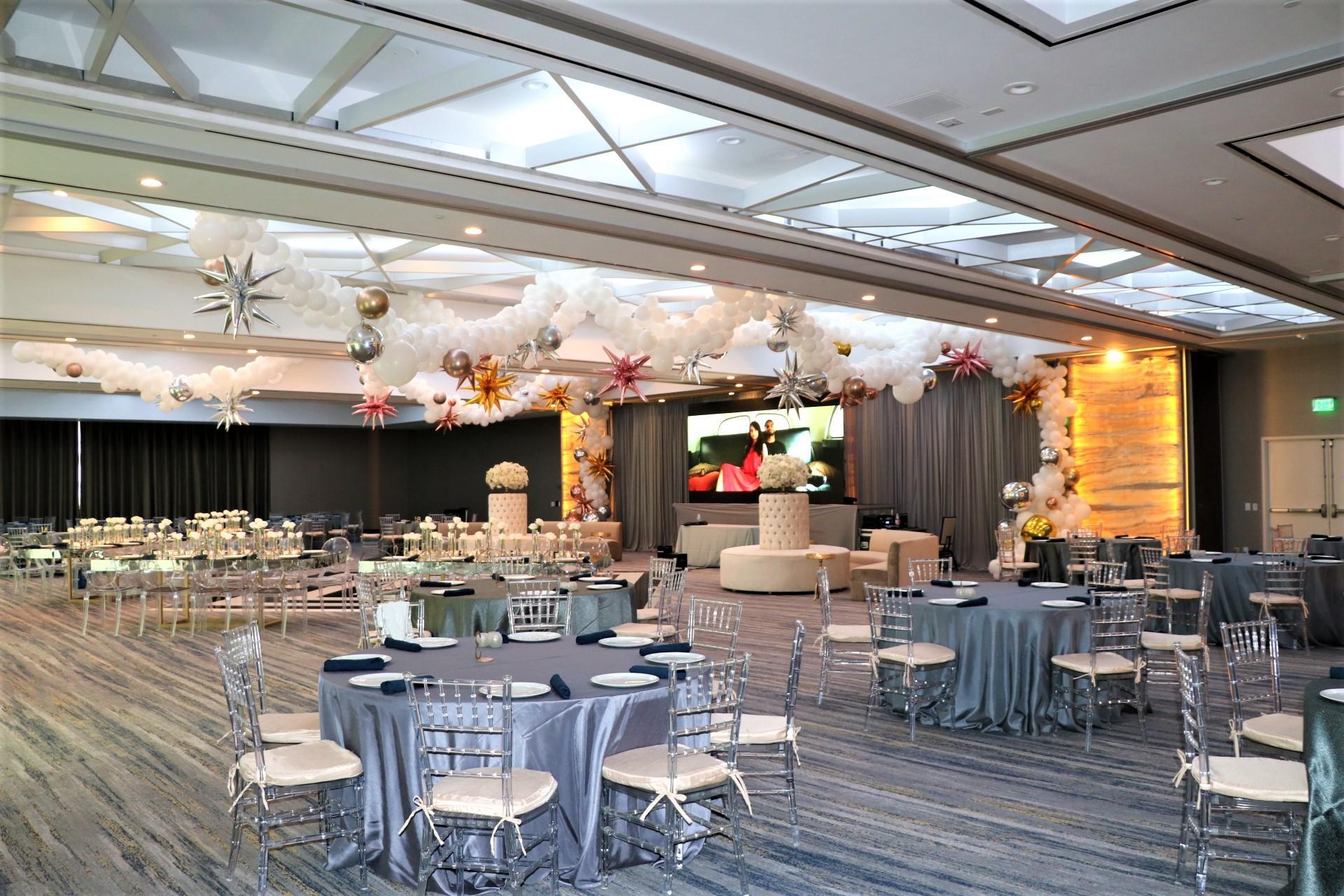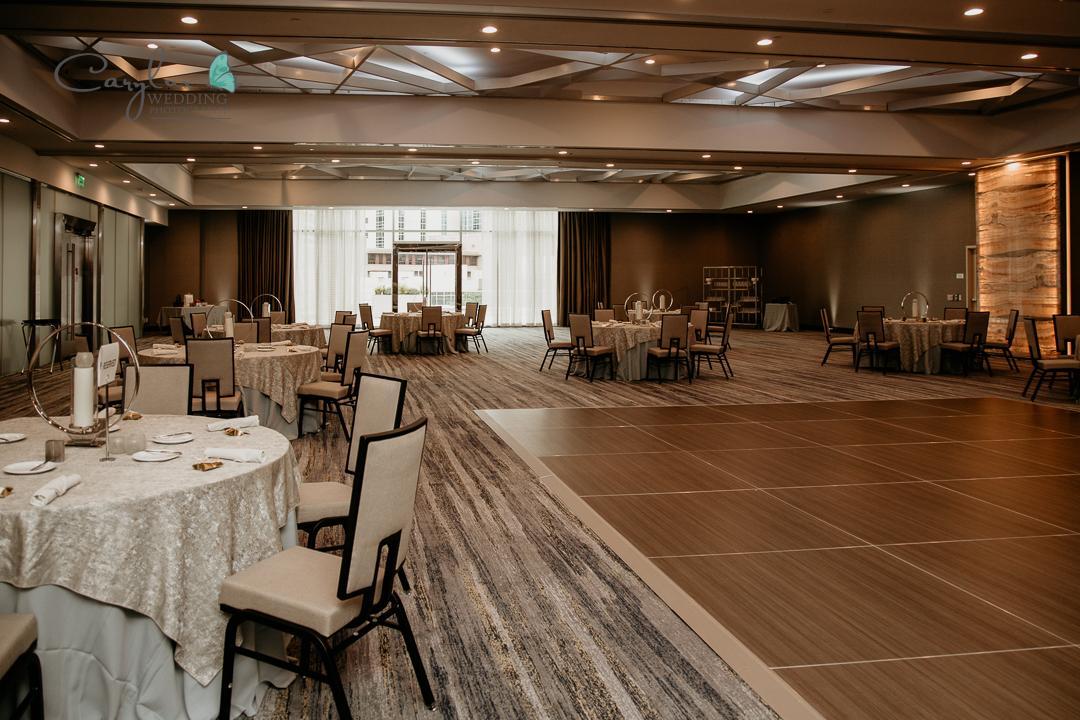 This expansive 8,001-square-foot space comfortably accommodates up to 600 seated guests for receptions and customizable ceiling lighting allows you to create the perfect ambiance for your dream event.