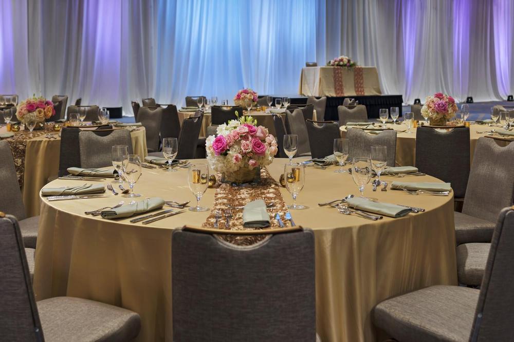 The Westin Irving Convention Center offers a variety of services for wedding ceremonies, receptions, bridal showers, engagement parties, elopements, and rehearsal dinners. The venue’s starting site fee includes access to a bridal suite, chairs, tables, linens, event planning services, flatware, glassware, china, setup, and cleanup. Guest accommodations, catering services, and all-inclusive packages are also available.