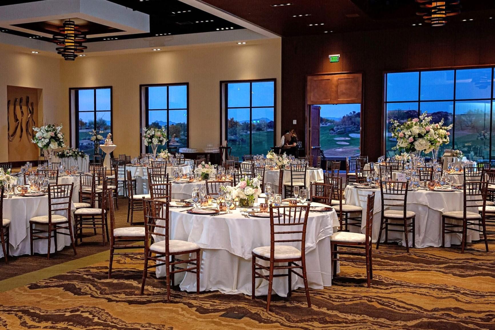 The Trailblazer's Ballroom is perfect for 150 - 500 guests. Steps from multiple terraces with incredible views of North Scottsdale, impeccable golf fairways, and blue desert skies. Our bagpiper playing in the distance, and the sound of Champagne glasses clinking in the evening, the Trailblazer's Ballroom is an elegant space to behold.
