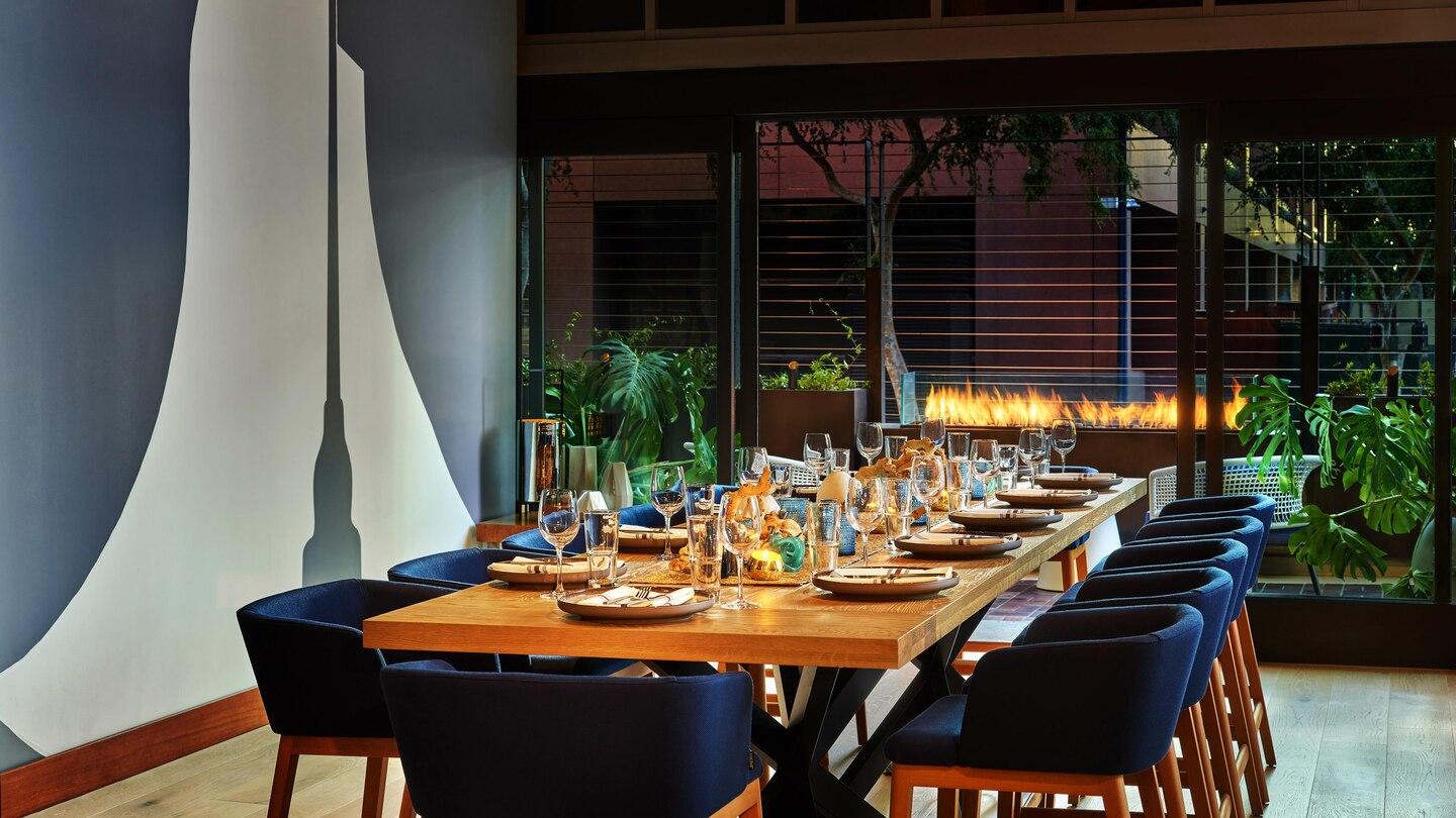 Our Restaurant Private Dining Room offers a remarkable So Cal inspired setting nestled alongside to the patio's mesmerizing fire feature.