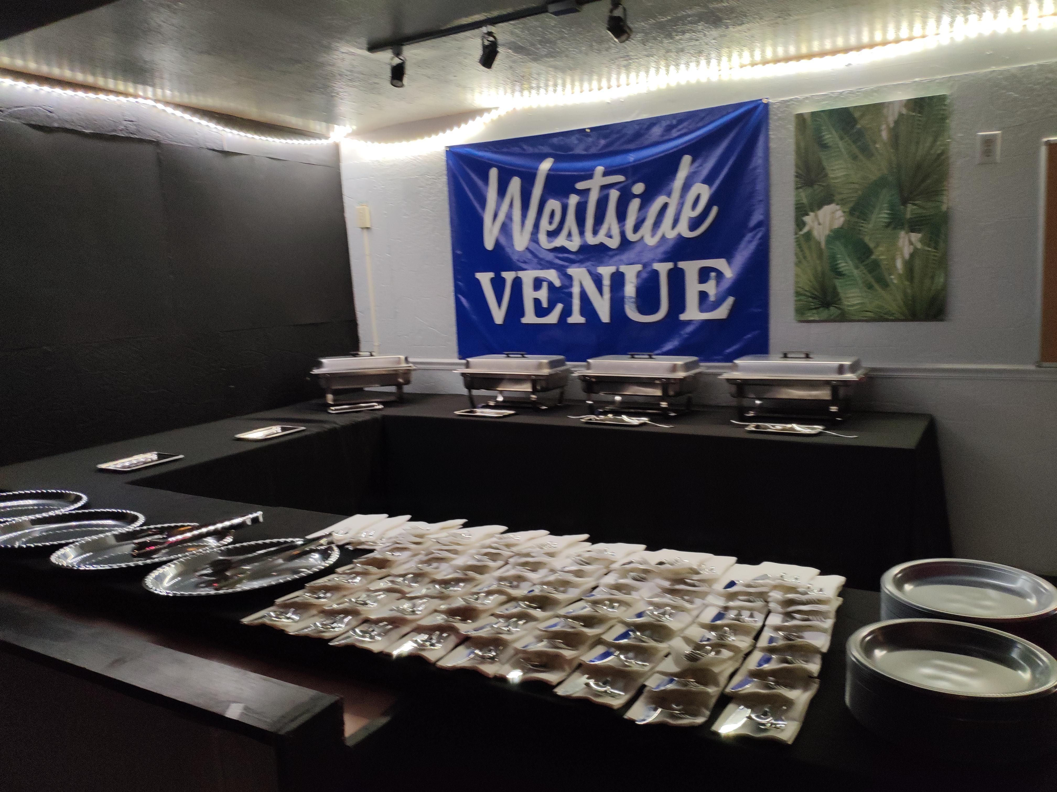 The Westside Venue is a comfortably intimate space for events, with a full bar, VIP section, buffet area, In-house PA system and dance floor, stage, and Game Room.