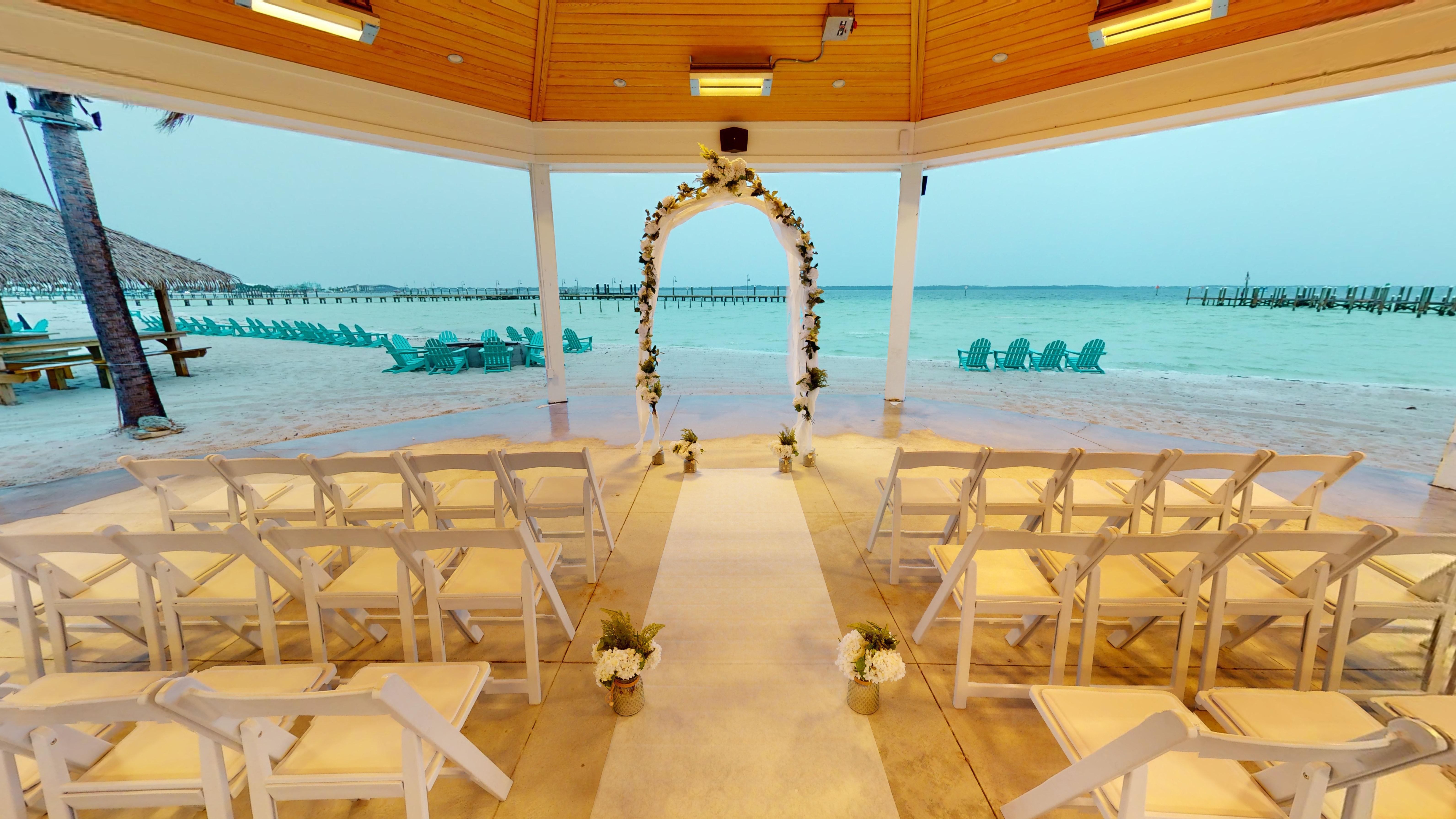 A large, covered pavilion to have your ceremony rain or shine on the beachfront! This venue is handicap accessible, to give a beach wedding that anyone can enjoy.