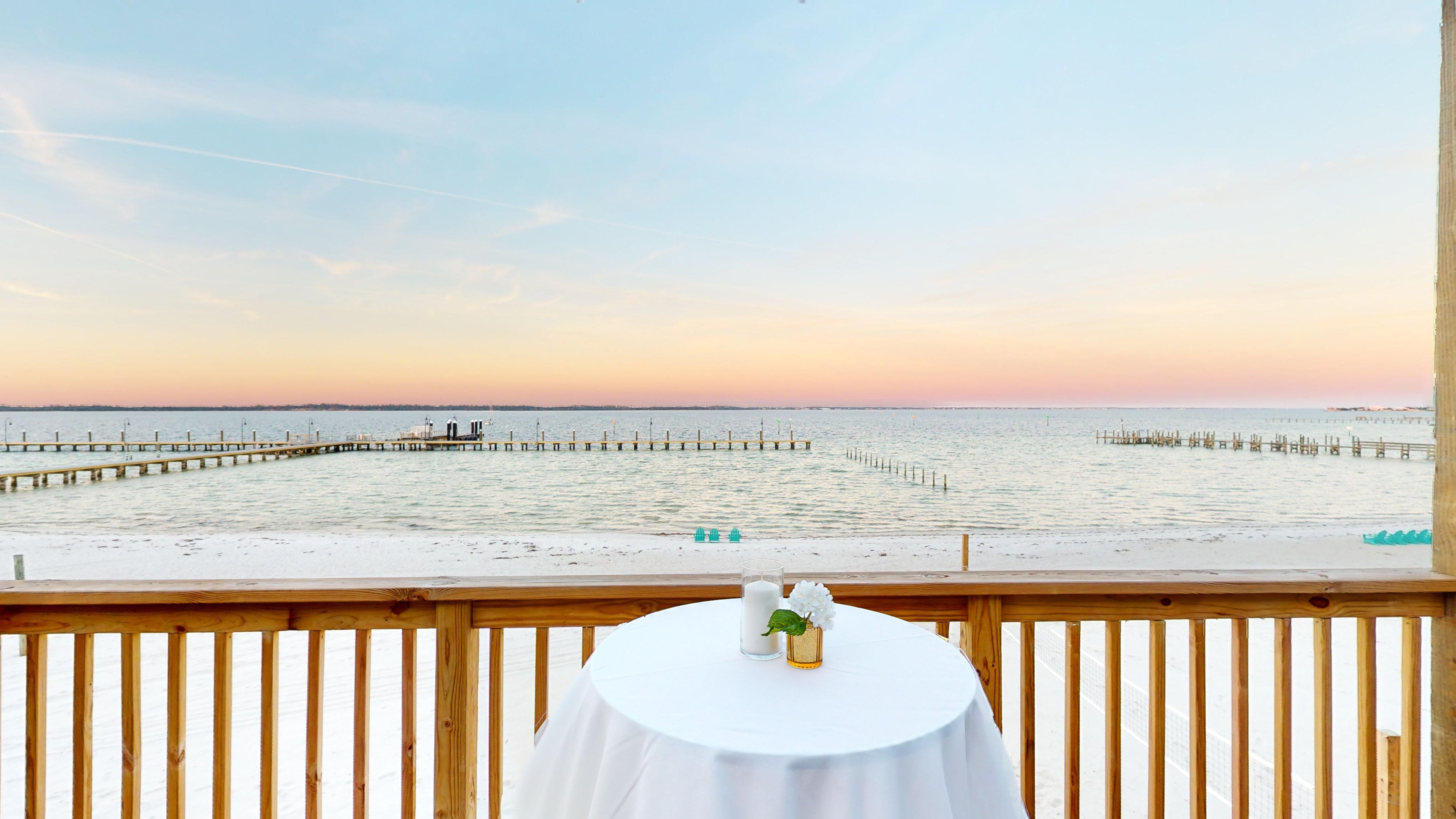 An intimate deck area with an amazing view of the beachfront, perfect for intimate gatherings and meals.