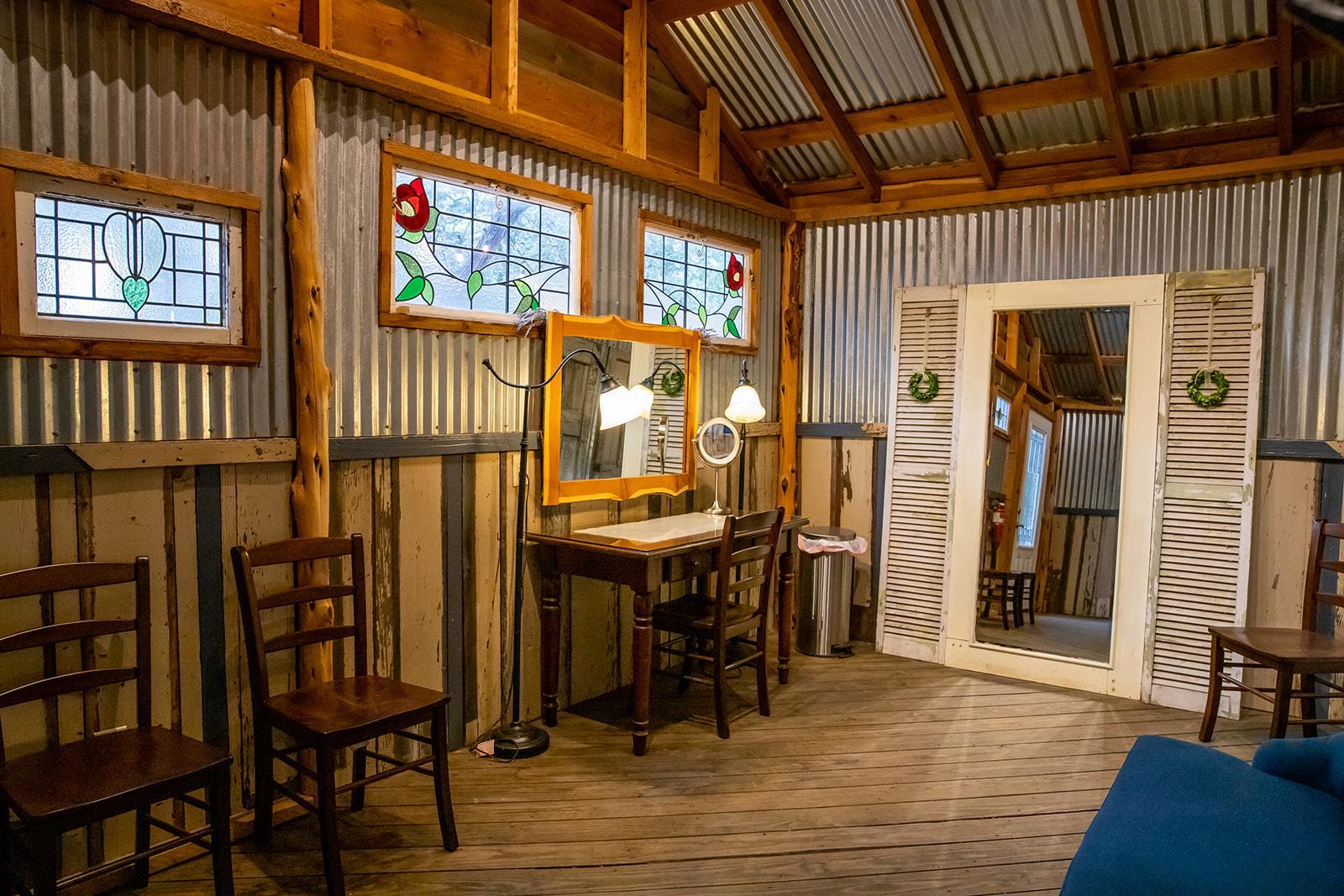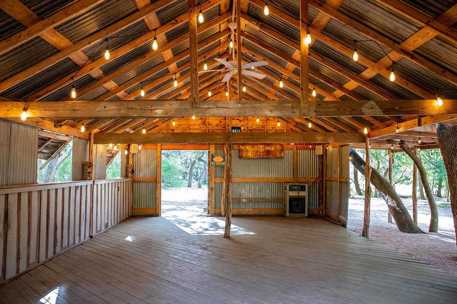 The Bluebonnet Barn is 20ft wide by 30ft long. It is the perfect size for a dance floor and opens into the reception area. The reception area is adjacent to the barn and gives you approximately 2000 sq. ft. of space for dinner seating. The Bluebonnet Barn is designed with multiple ceremony spaces. You can choose to wed under the shade of huge oak trees, in a lawn of green grass under the endless Texas sky, or by a field blanketed in Spring wildflowers.