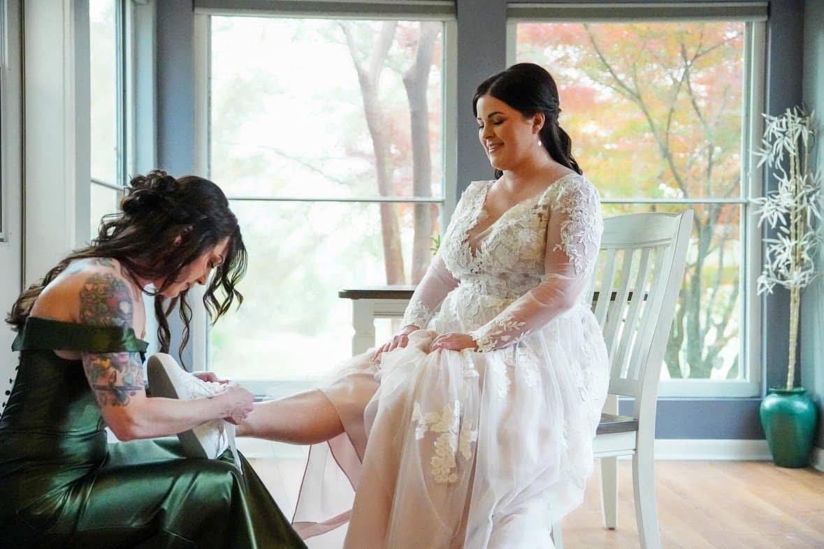 Spacious bridal suite with room and space for all of your getting ready needs. This includes a hair and makeup bar bar, kitchenette with a full fridge, snack bar, full table couches and a bed.