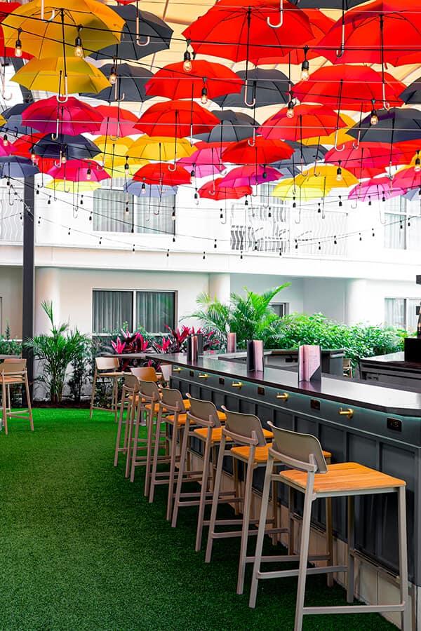 The Wilson’s 70-seat indoor dining room — with an additional 20 seats at the bar —welcomes travelers and locals to sit down, relax, enjoy a cocktail, and dive into some of the most delicious dishes in Orlando. The outside patio seats 70 as well, with an additional 16 seats at a whimsical open-air bar called The Wilson Backyard, where brightly colored umbrellas seemingly float under Central Florida’s blue skies. The restaurant will also service the pool area, where guests can enjoy fresh food and beverages from any of the 120 poolside loungers.