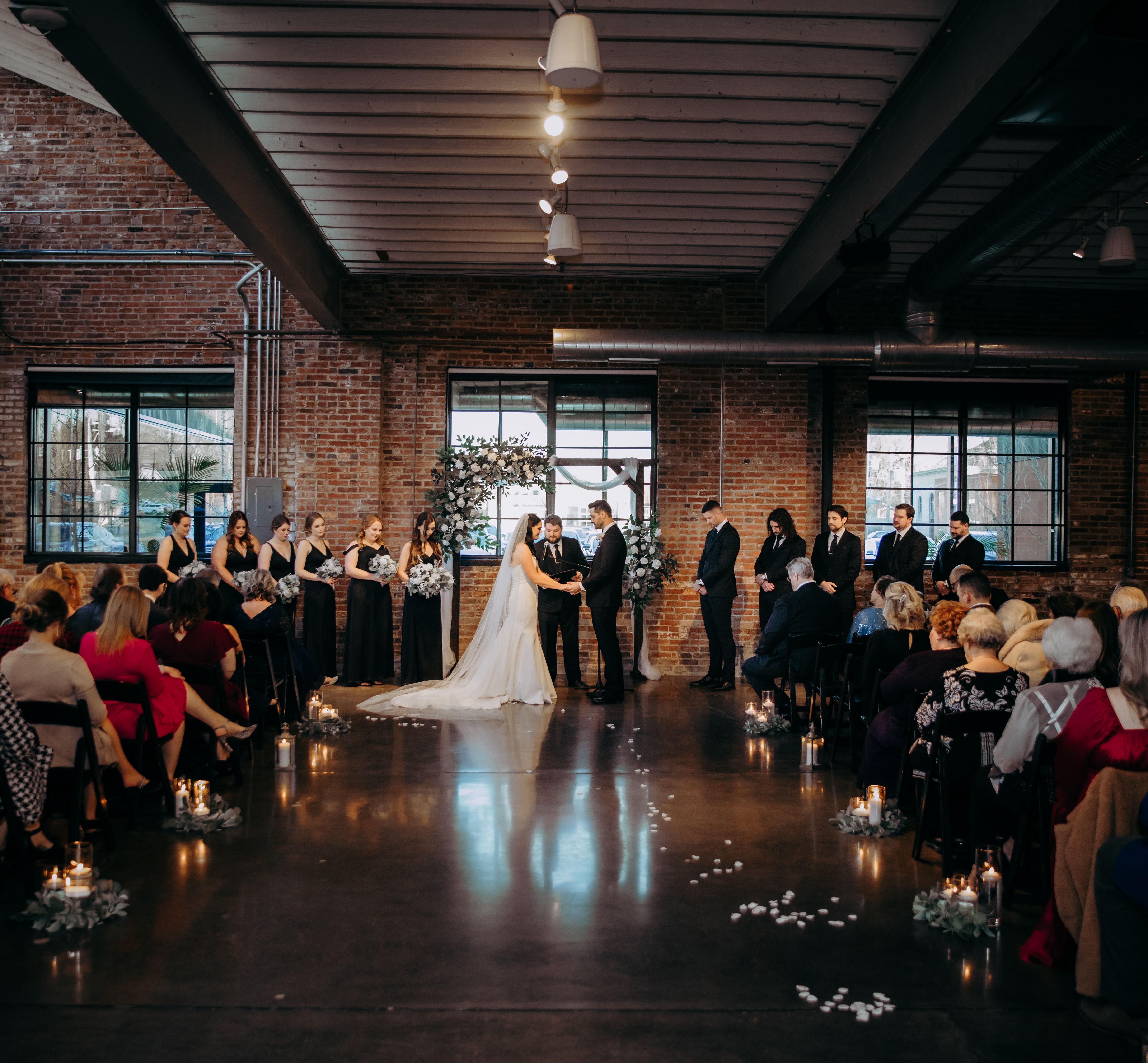 As a working glass studio and glass gallery, Third Degree Glass offers stunning spaces with an industrial chic ambiance for ceremonies and receptions. All bookings get access to our large East Gallery with brick & glass bar; Glass Gallery filled with pieces by TDG artists; outdoor courtyard; and comfortable Vetro Lounge for wedding prep. Why get married at a glass studio? You can add unique extras like a glassblowing demo and glass unity ceremony to make your wedding truly memorable! Other notable amenities include a private parking lot, one-floor accessibility for guests, and access to all the Delmar Maker District has to offer.