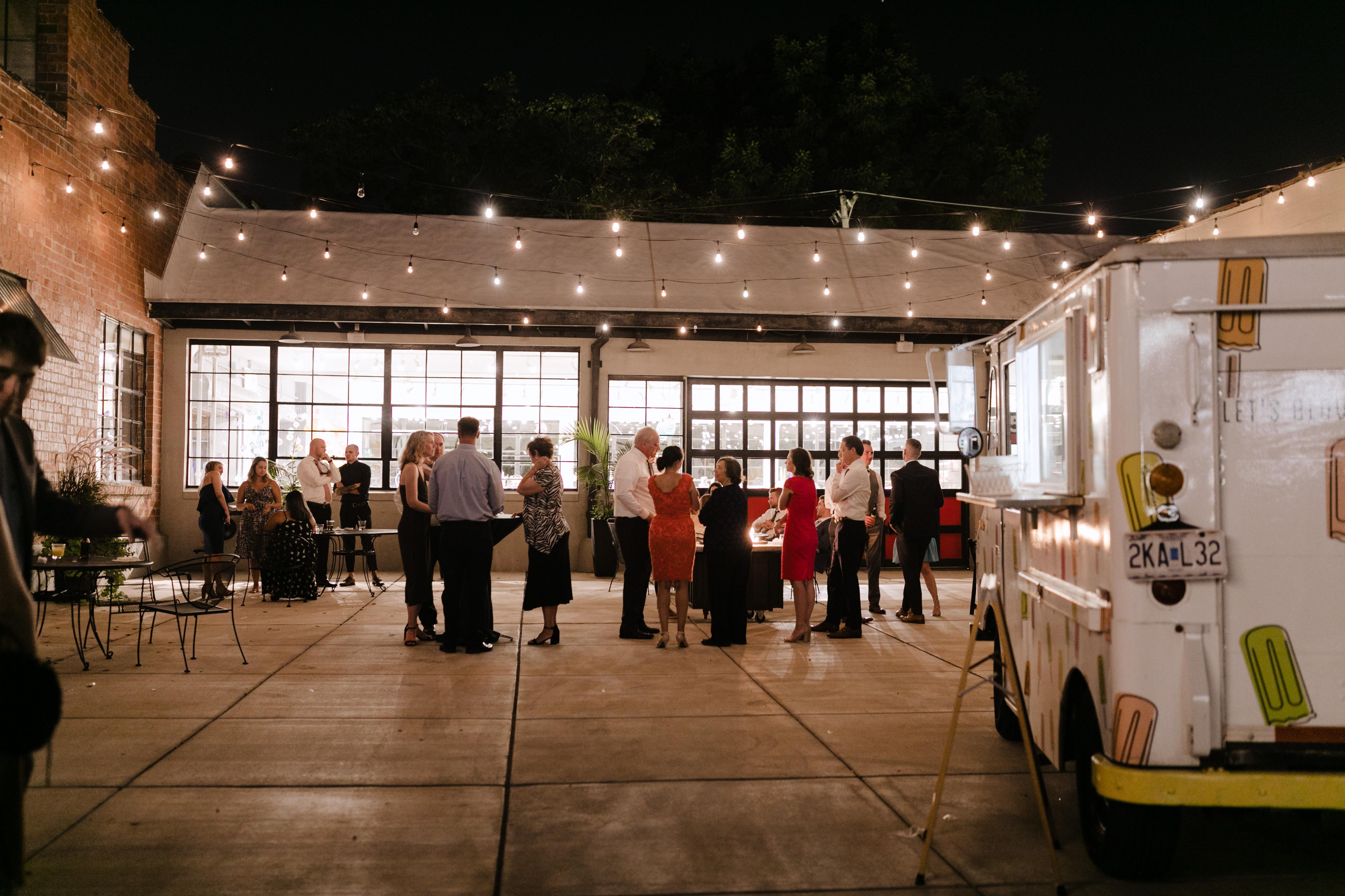 Nestled in between our indoor spaces, the private courtyard offers an additional space for guests to gather and for wedding photos. Garage doors in the East Gallery and Glass Gallery open to the courtyard to create a seamless space on beautiful evenings. Bring in a food truck for late-night snacks!