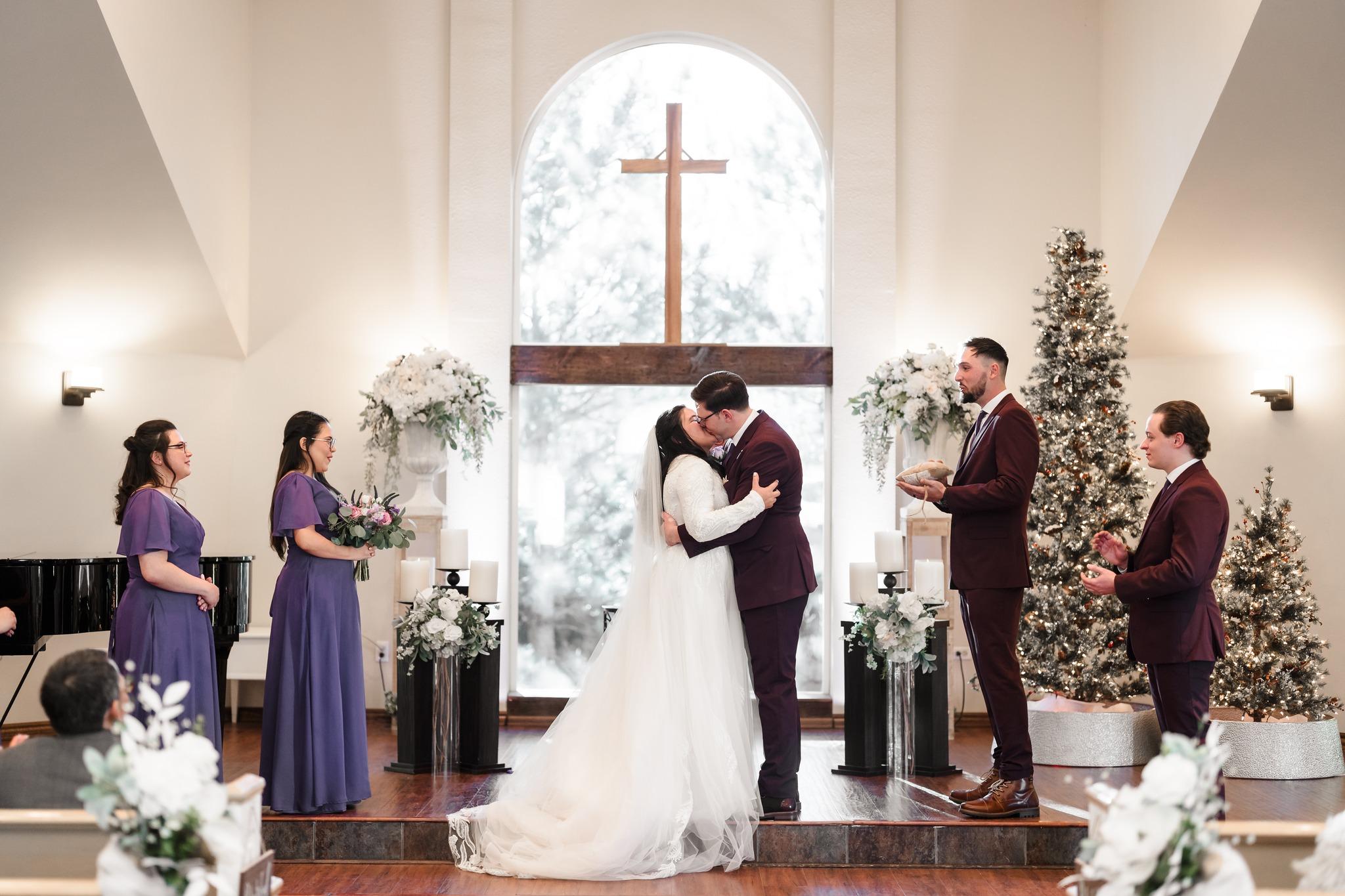 Choose a wedding venue worthy of your dreams! Take the first step of your new journey with your soul mate amidst the colossal pines and flowing mountain cascades of Colorado. The cathedral ceilings and wood-hewn floors of Three Trees Chapel make it a perfect wedding venue for those who prefer to honor their commitments to each other in full view of unspoiled nature. Our cozy, budget friendly wedding venue is intimate enough for two, but it's also sufficiently apportioned to play host to up to 200 guests. Gather around the altar for a quiet personal ceremony, or draw your friends and family close in the sanctuary before the main event. Whether you want to exchange your vows beneath the canopy of our Garden Wedding tent or come together with a small group near the natural splendor and serene tones of our mountain waterfall, we can accommodate.