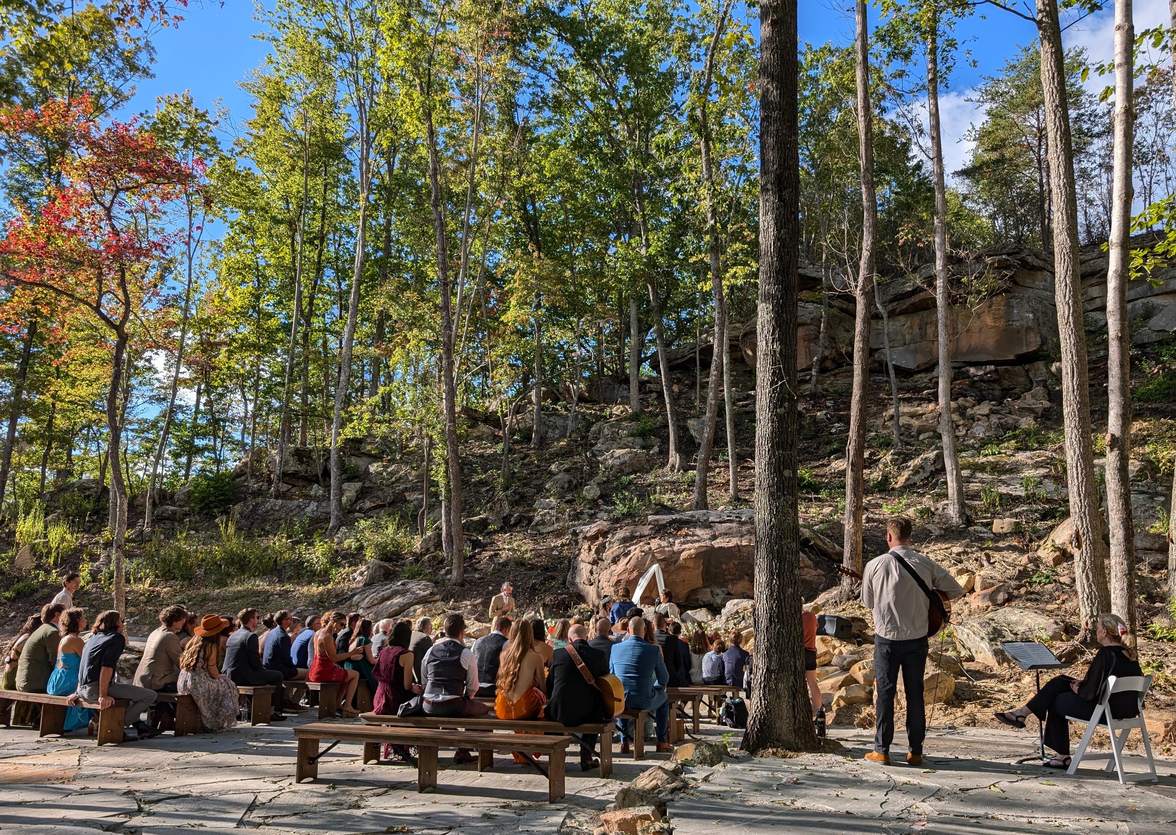 Timber Rock Lodge is a stunning boutique wedding and event venue with overnight lodging. We want you to be able to spend an amazing wedding weekend filled with quality time with those who have traveled here to celebrate with you. Our atmosphere and property invite relaxation and you and your guests are our sole focus! There are indoor and outdoor spaces available for your ceremony and reception as well as rooms for you and up to 25 other guests to stay on property. We're a Bavarian-inspired 12,000 sq ft log building surrounded by trees and woodland trails - away from the hustle and bustle. From the Great Hall with its dramatic stone fireplace and herringbone wood floors to The Cliffs where outdoor drama is all around in the cliffside waterfall, boulders and trees, Timber Rock Lodge will be an amazing backdrop for your special day! Timber Rock Lodge is owned and operated by a husband and wife team who believe customer service should be the cornerstone of all we do!