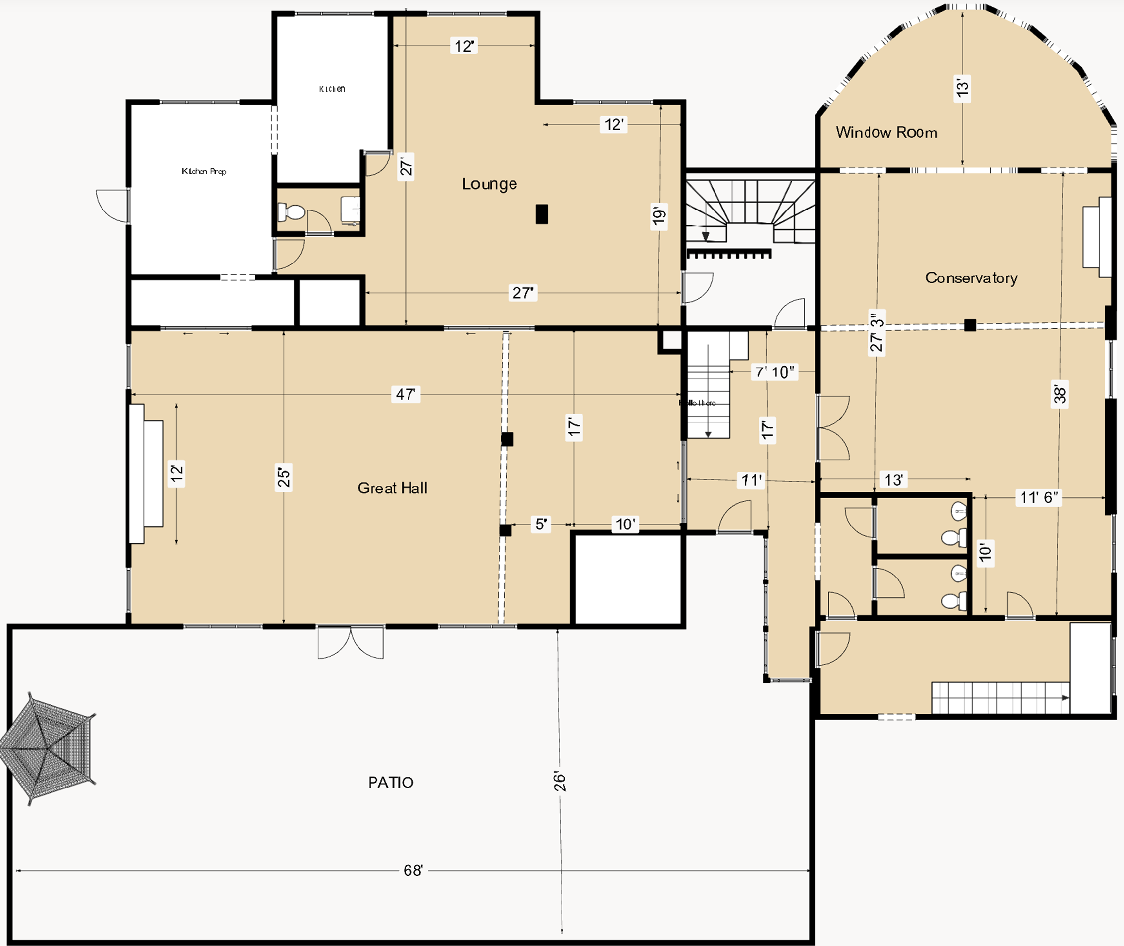 Open beautiful doors to connect The Great Hall the Lounge and the Courtyard.