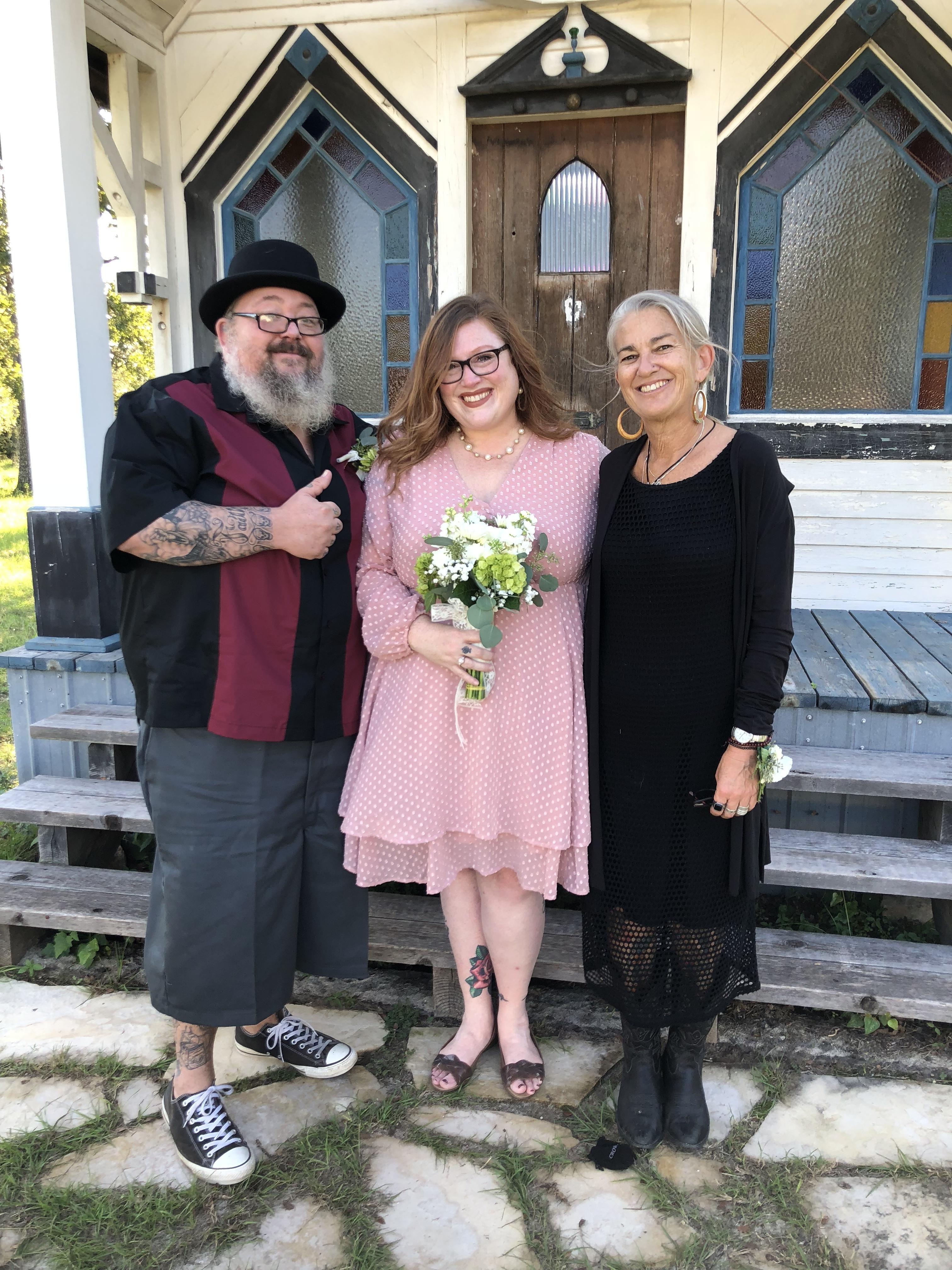 Tiny T Ranch is a working ranch with a wedding chapel. We are SUPER laid back and we only work with super laid back couples. We are not a fancy high-end venue. If you dig nature, farm animals, and a relaxing time, we might be right for you. We invite prospective clients to come and see the place, meet the team, and see what you think. In addition to the Tiny Chapel there is a 1325 square foot reception hall. It is DIY. You set up and break down. You can rent our tables and chairs if you want. If you need an officiant, one lives on-site. There is a bridal cabin and a man shed for grooms. Or if you’re two brides or two grooms, y’all can flip a coin and see who gets what space. You can easily fit 80 guests in the reception hall so if it rains, you are literally covered. We have hosted hundreds of weddings from elopements to bigger events. We’d love to work with you if our vibe suits your vibe and vice versa.
