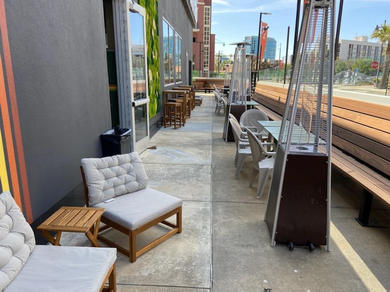 Outdoor reserved space on our front patio, with easy access to mini golf and the bar.