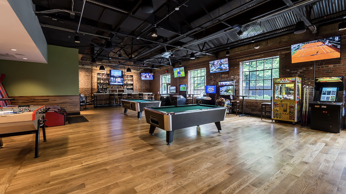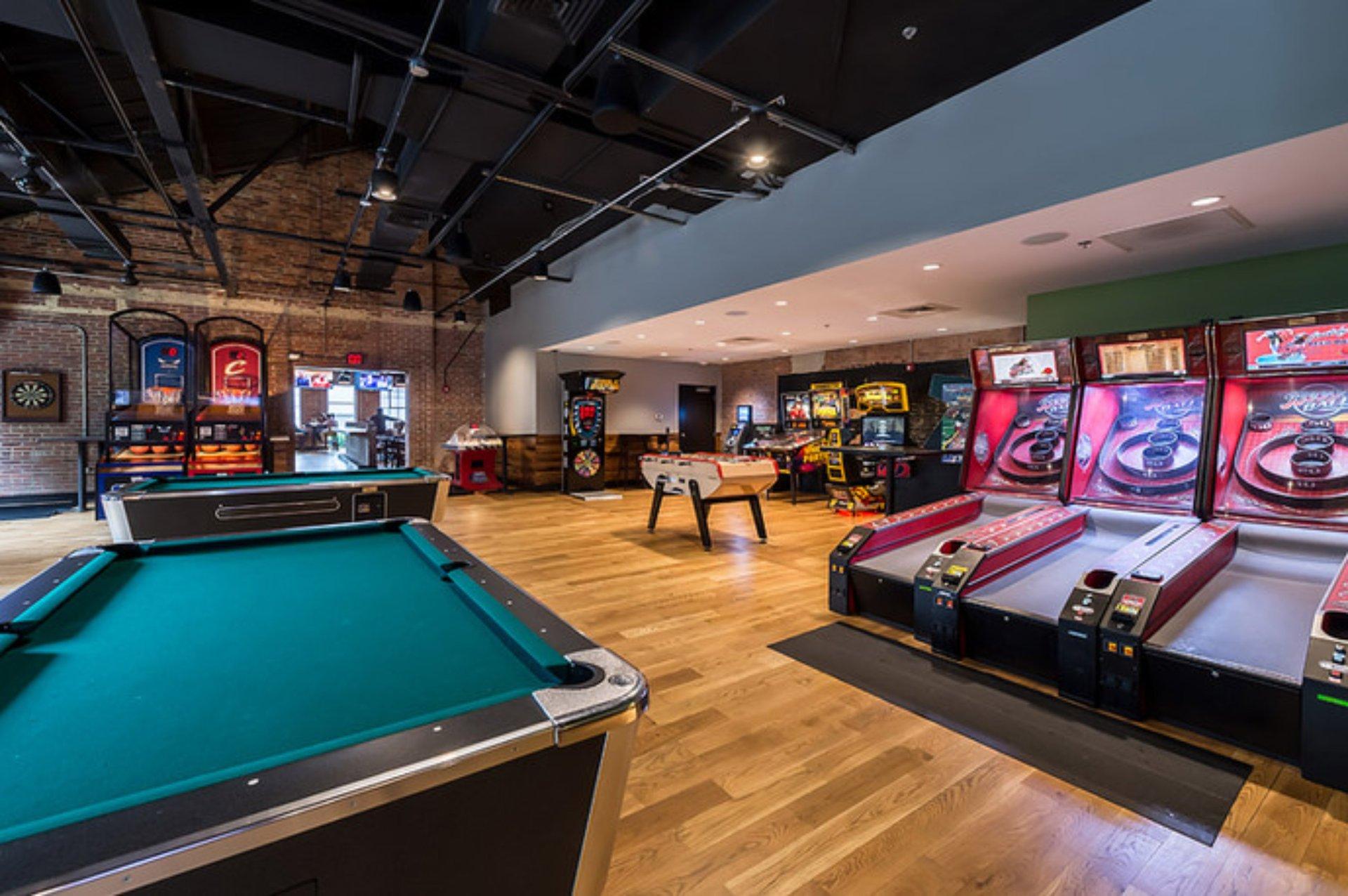 The game room is a unique space for your next event. The game room is only available for private events Monday-Thursday. Couples may also like the idea of using the game room themselves during their rehearsal dinner as a way to release some of the pre-wedding jitters.