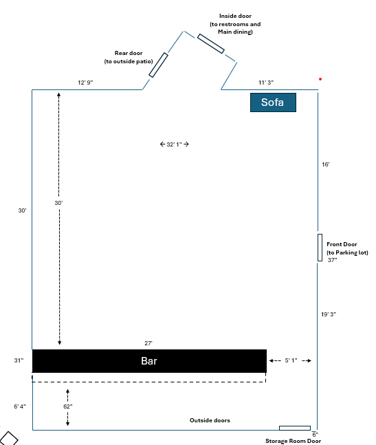 Another 1,000 square foot flexible room, decorated to match the main dining room, but with private doors if needed. Whether you want a separate room to welcome and register guests, or you'd like a room with stunning views for your guests to mingle in a cocktail hour between your ceremony and reception , or perhaps you want the groom and his attendees to have a place to relax and prep. This is the flexible room you need. With a full-length bar and walk-in fridge access, it has it all.