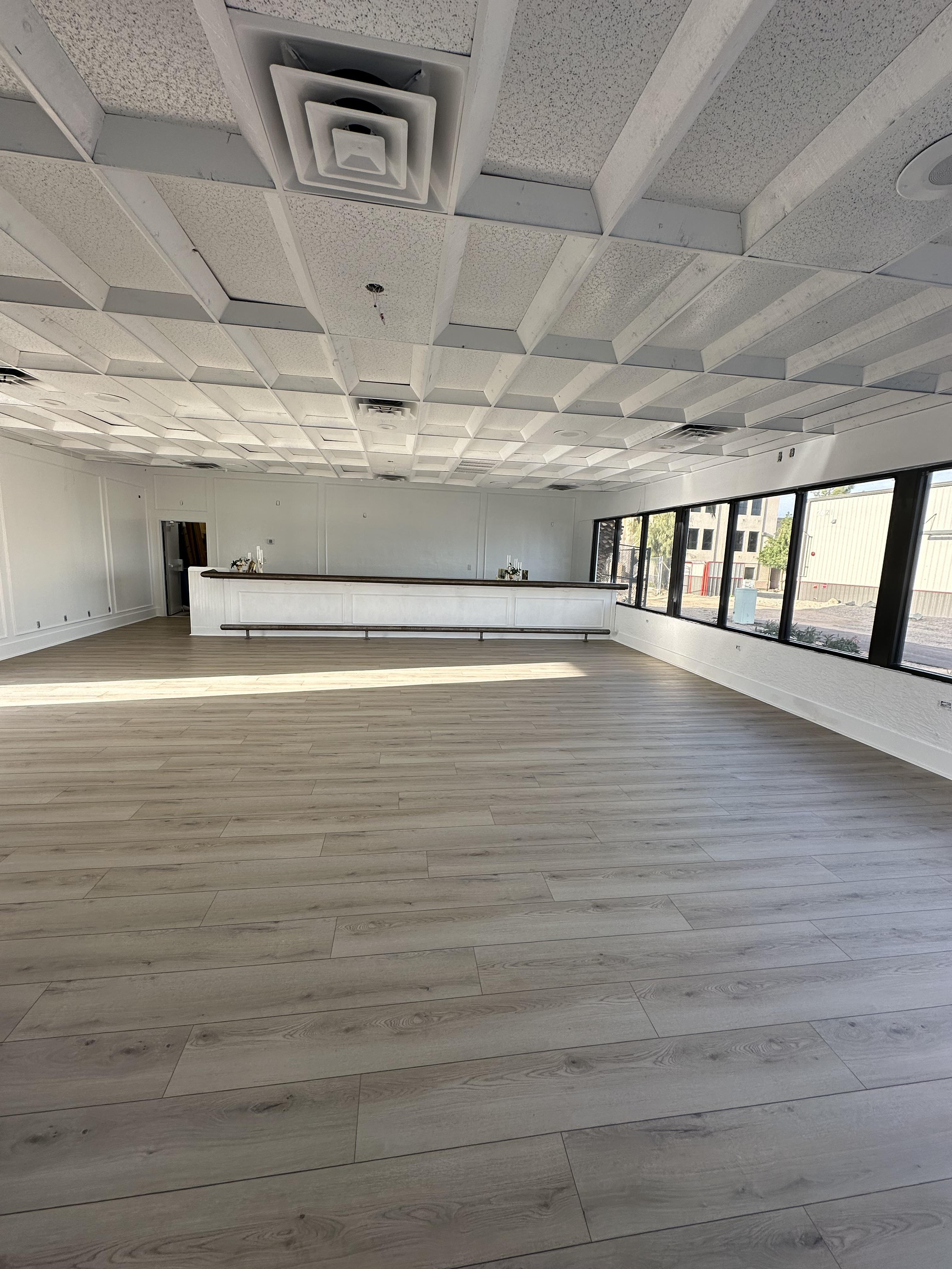 With 2,400 square feet and an open design, our flexible main room can be used for seating guests at a banquet, for indoor wedding ceremonies, for dance floors, and for all of the above!