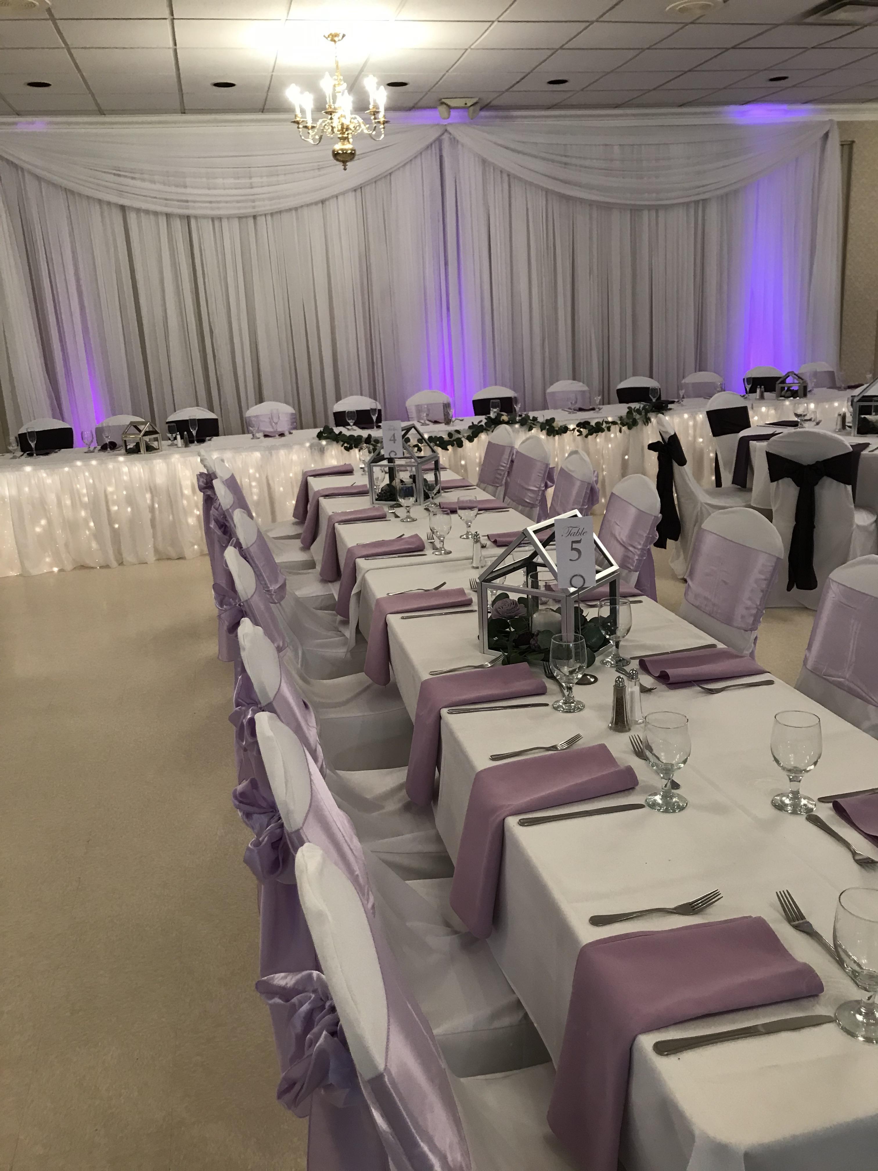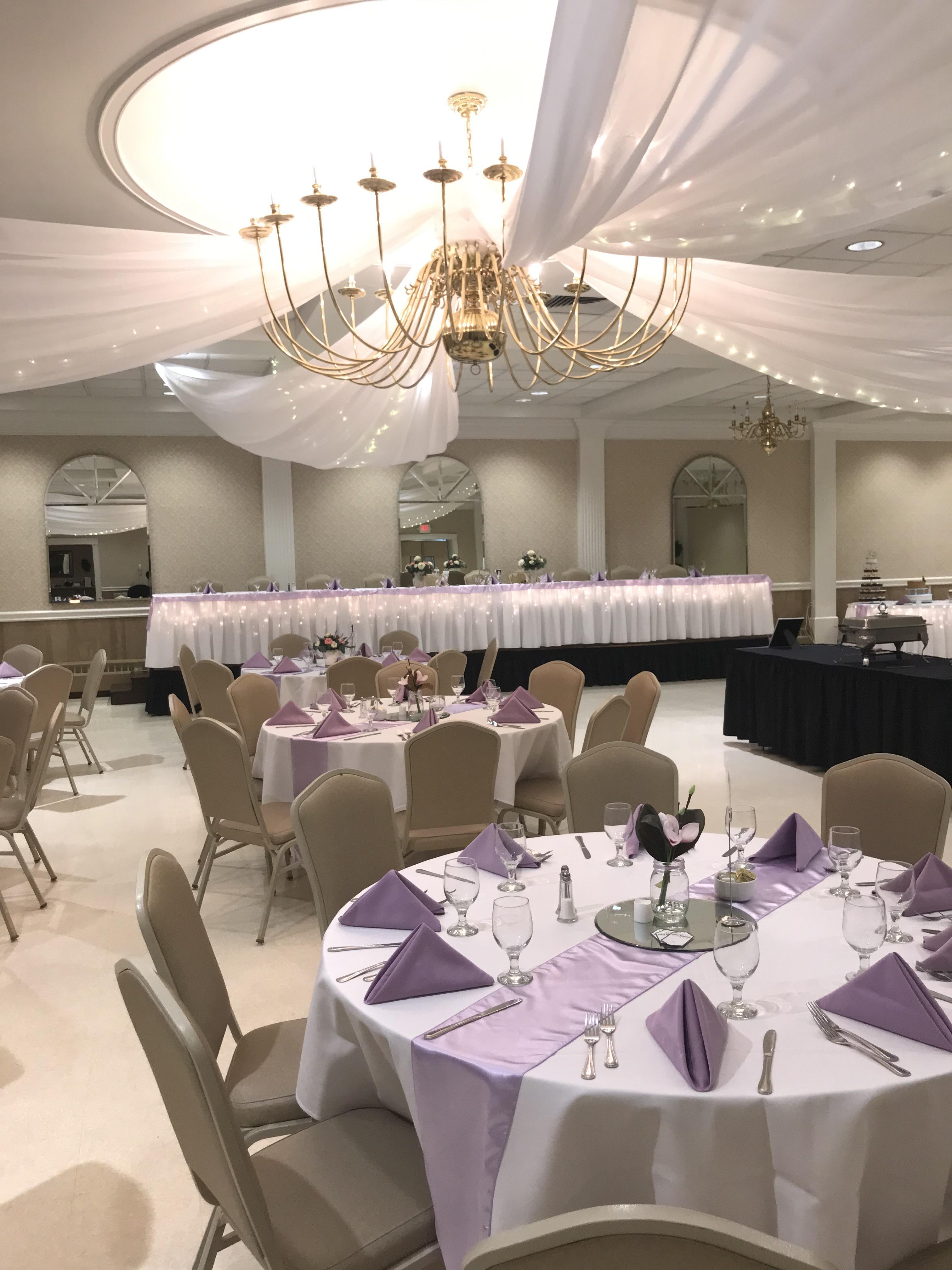 -Fully dimmable chandeliers for different lighting from dinner to dancing -Wall-to-wall white tile flooring -Neutral colored walls and chairs -Private entrance, bar room, restrooms, and dressing room -Removable air-wall to scale down the room for more intimate events or scale up the room for larger events