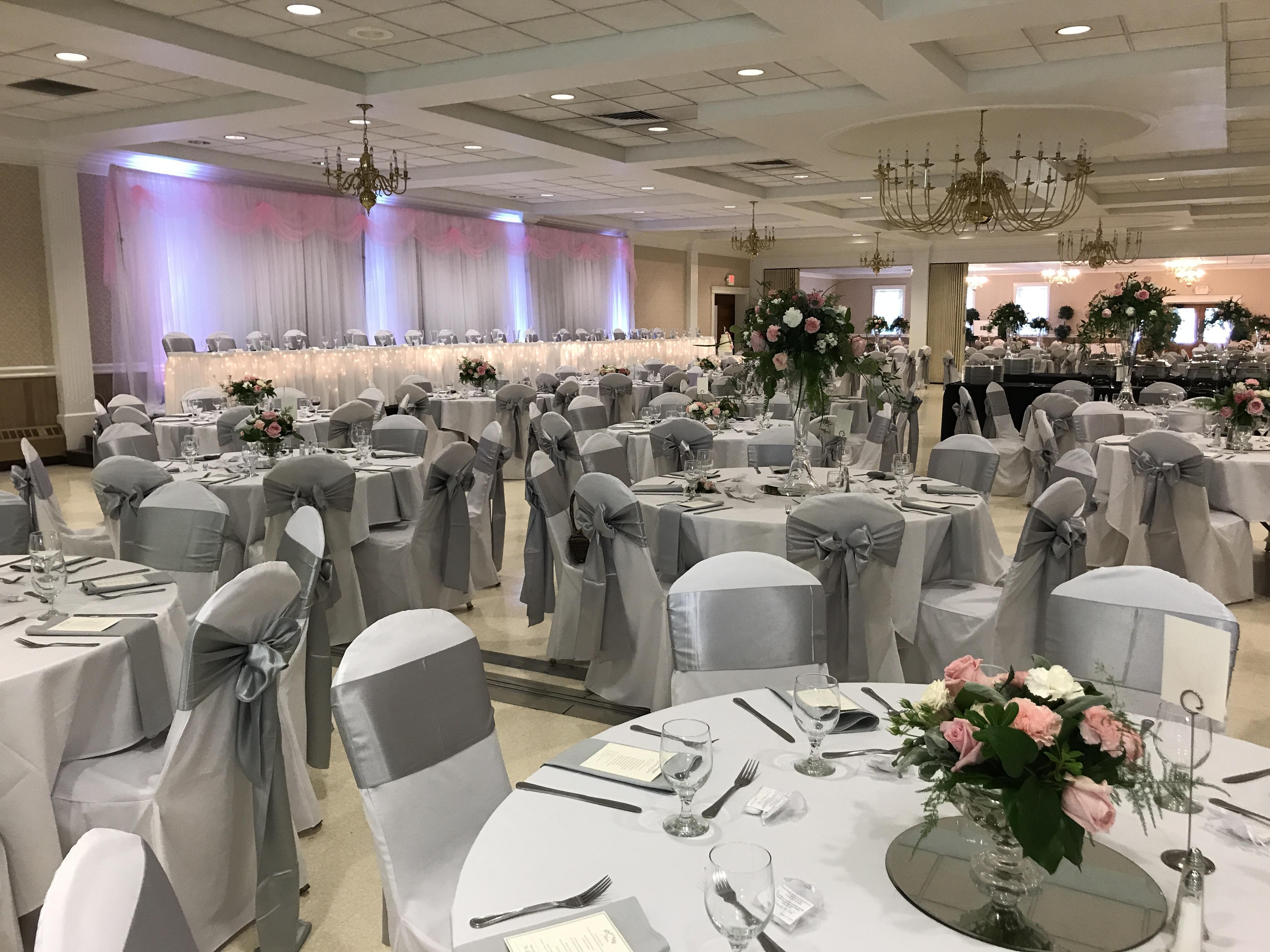 -Fully dimmable chandeliers for different lighting from dinner to dancing -Wall-to-wall white tile flooring -Neutral colored walls and chairs -Private entrance, bar room, restrooms, and dressing room