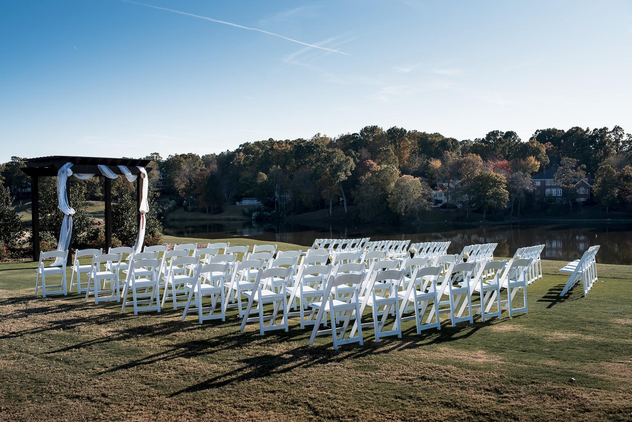 Situated on an 18-hole championship golf course designed by Arnold Palmer, TPC Piper Glen is ideal for couples seeking a wedding celebration that has sunny Charlotte-style charm and country club-style sophistication. TPC Piper Glen offers an outdoor ceremony site on the open lawn, which affords inimitable views of the surrounding golf course and trees. Couples can say their vows under a natural wooden arbor before a charming copse of trees. You can also enjoy your outdoor celebration on our elegant, covered patio. Indoor receptions can be held in our main ballroom which has a neutral theme, accommodating a variety of color schemes. The interior of the clubhouse features dark wood beams, contemporary décor, marble countertops, and floor-to-ceiling windows for panoramic views of the golf course, lake and sweeping hills. For a flawless wedding planning process, couples will work with a private event coordinator dedicated to their event from start to finish.
