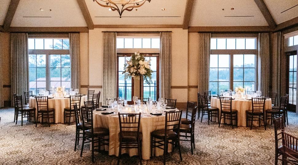 At TPC Sawgrass, we specialize in creating memorable weddings and events. From small, intimate rehearsal dinners and wedding ceremonies to lavish receptions, we take pride in ensuring that every detail is flawlessly executed. The Clubhouse at TPC Sawgrass is a 77,000 square-foot Mediterranean Revival style clubhouse with rich, vaulted wood ceilings, iron chandeliers, terra cotta tile, and a stunning grand staircase. Our variety of elegant banquet spaces combined with delectable cuisine prepared by award-winning chefs offer ample choices for your event.
