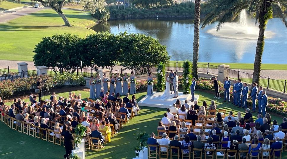 Whether on our stunning event lawn with views of the PLAYERS Stadium Course or in a beautifully appointed room in the Clubhouse, we’ll set the stage for a truly memorable ceremony that will exceed your expectations in every way. If your ceremony is at a church or another venue, you will still have plenty of opportunities to take photos in our beautiful setting before joining your wedding reception. Whether you envision a lavish wedding or a small, more intimate affair with family and friends, we have the perfect space and can customize a package for groups of 50 to 500.