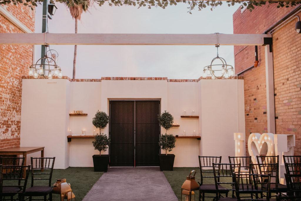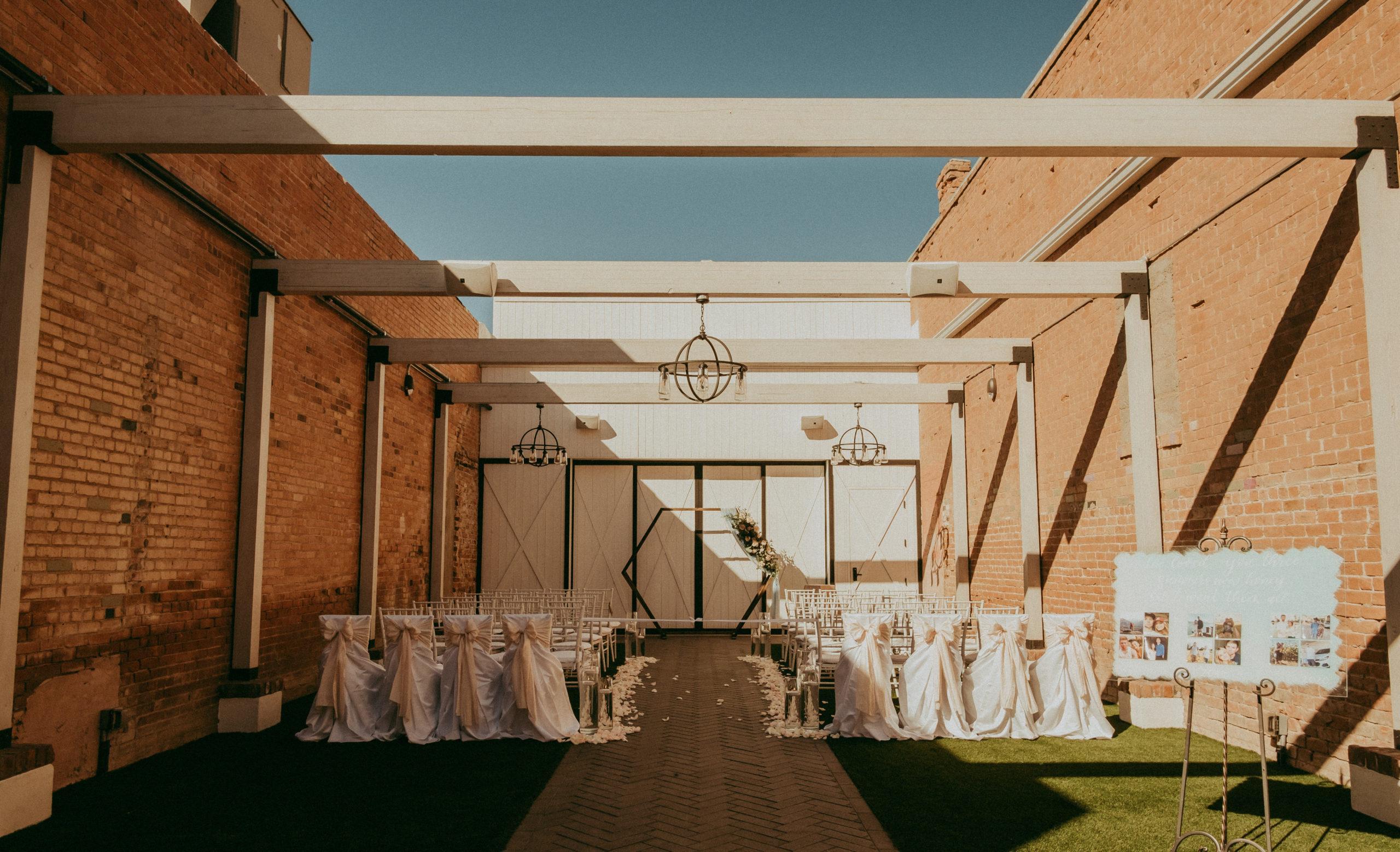 Rustic allure meets beautiful nature in this charming outdoor space. Surrounded by old brick walls and white wooden beams under Arizona's open sky, it offers a picturesque backdrop for outdoor ceremonies and celebrations. Outdoor ceremony capacity – 150