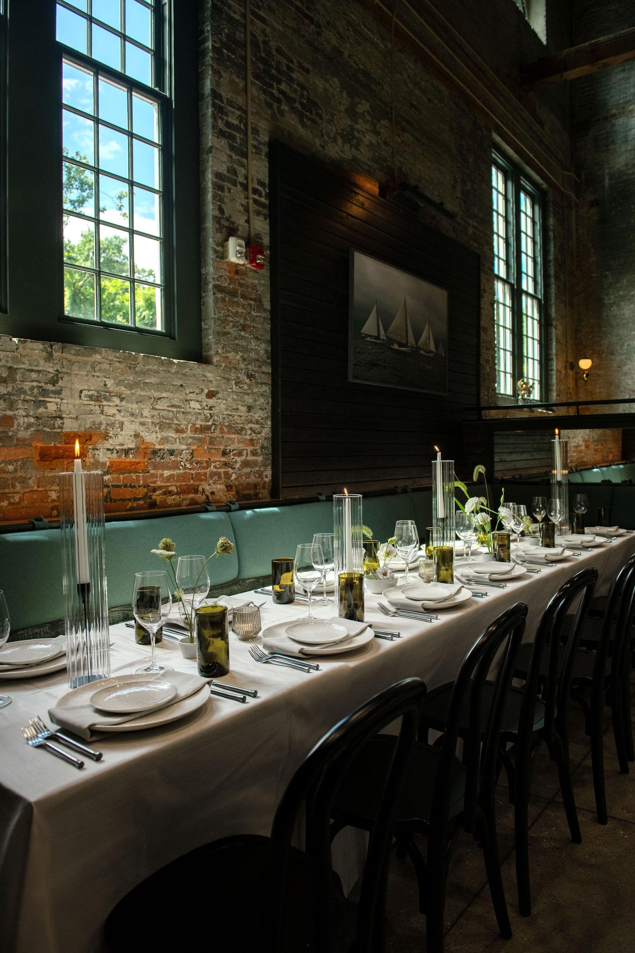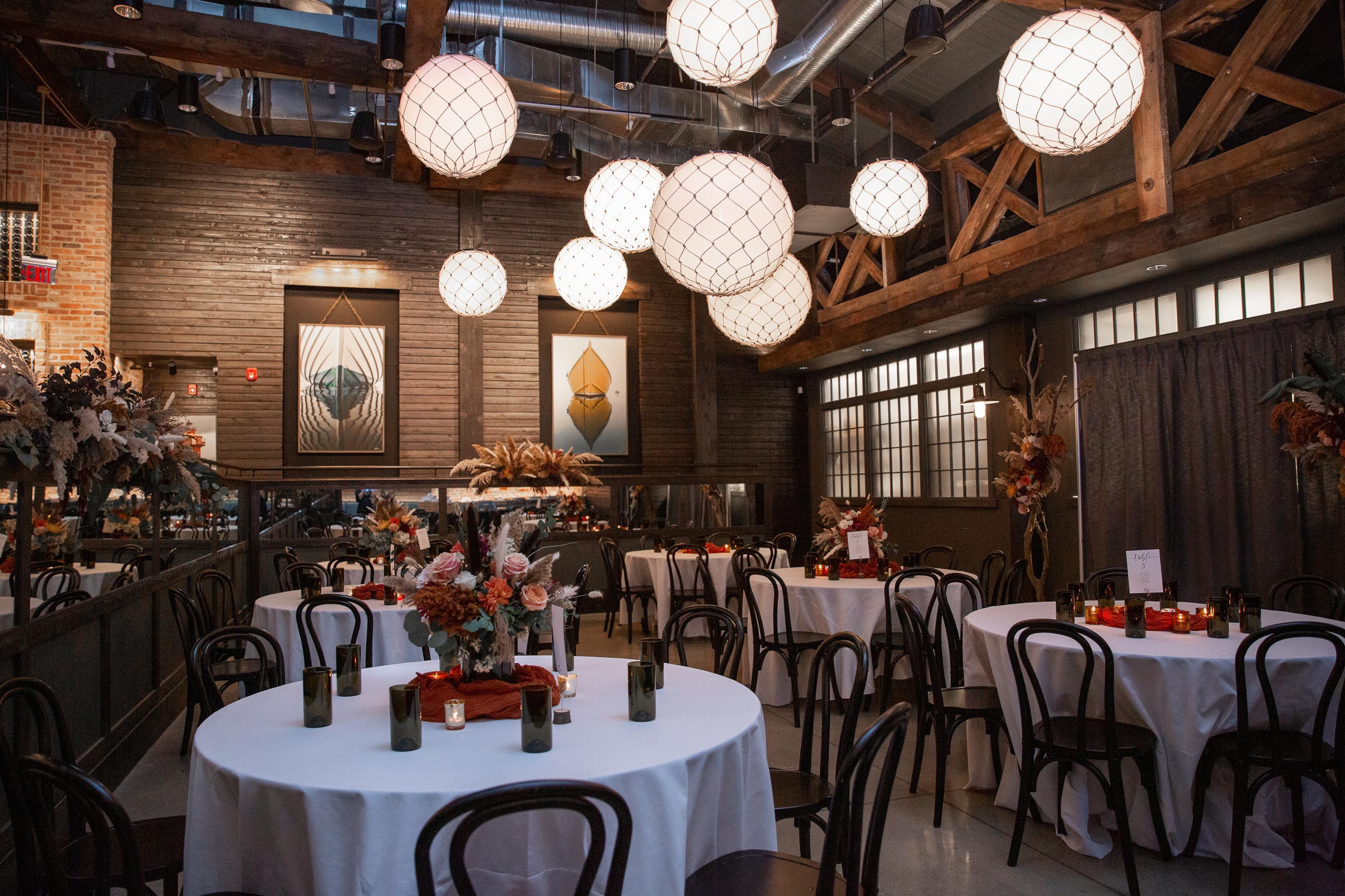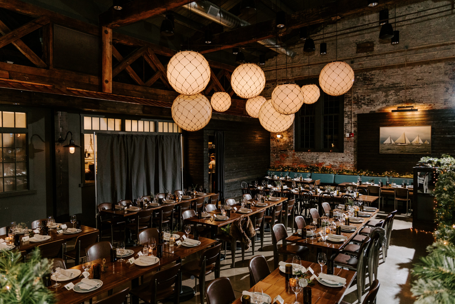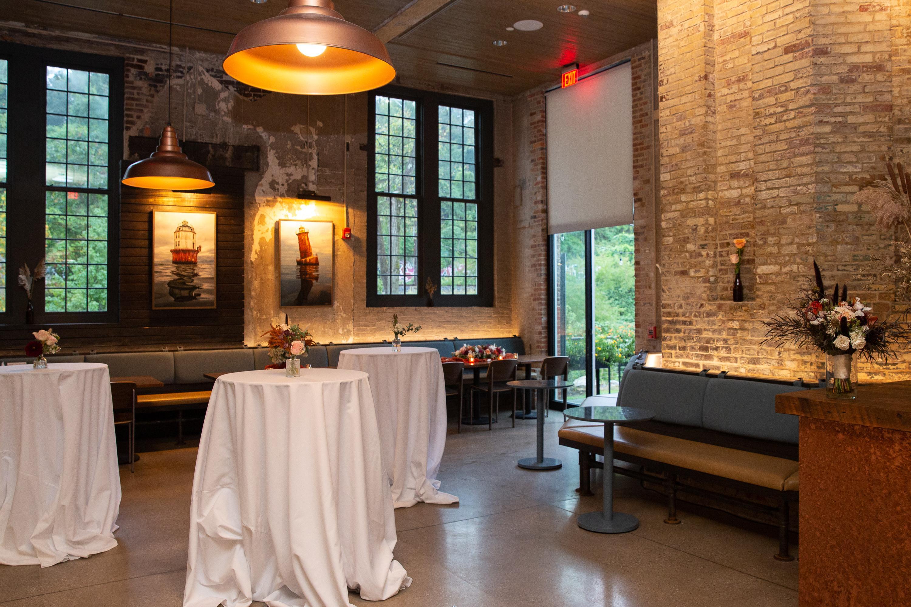 Our smokestack room takes its name from the prominent smokestack that crowns the restaurant. This semi-private area provides a relaxed lounge atmosphere, featuring high-top tables and booth seating. Guests can enjoy views of the raw bar and the private bar, which is equipped with two TVs. The Smokestack is perfect for a cocktail hour, after party, welcome party, wedding shower, and more!