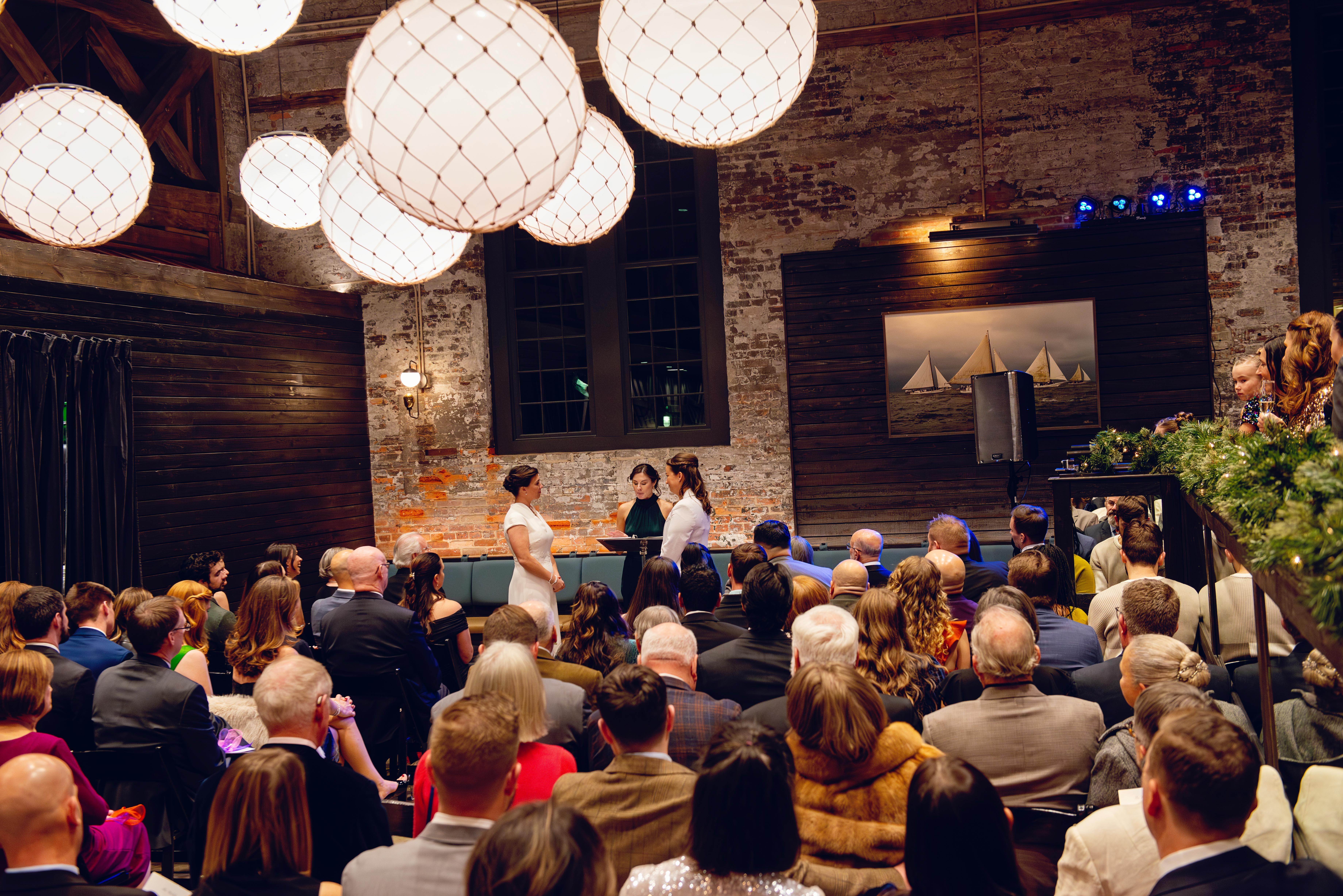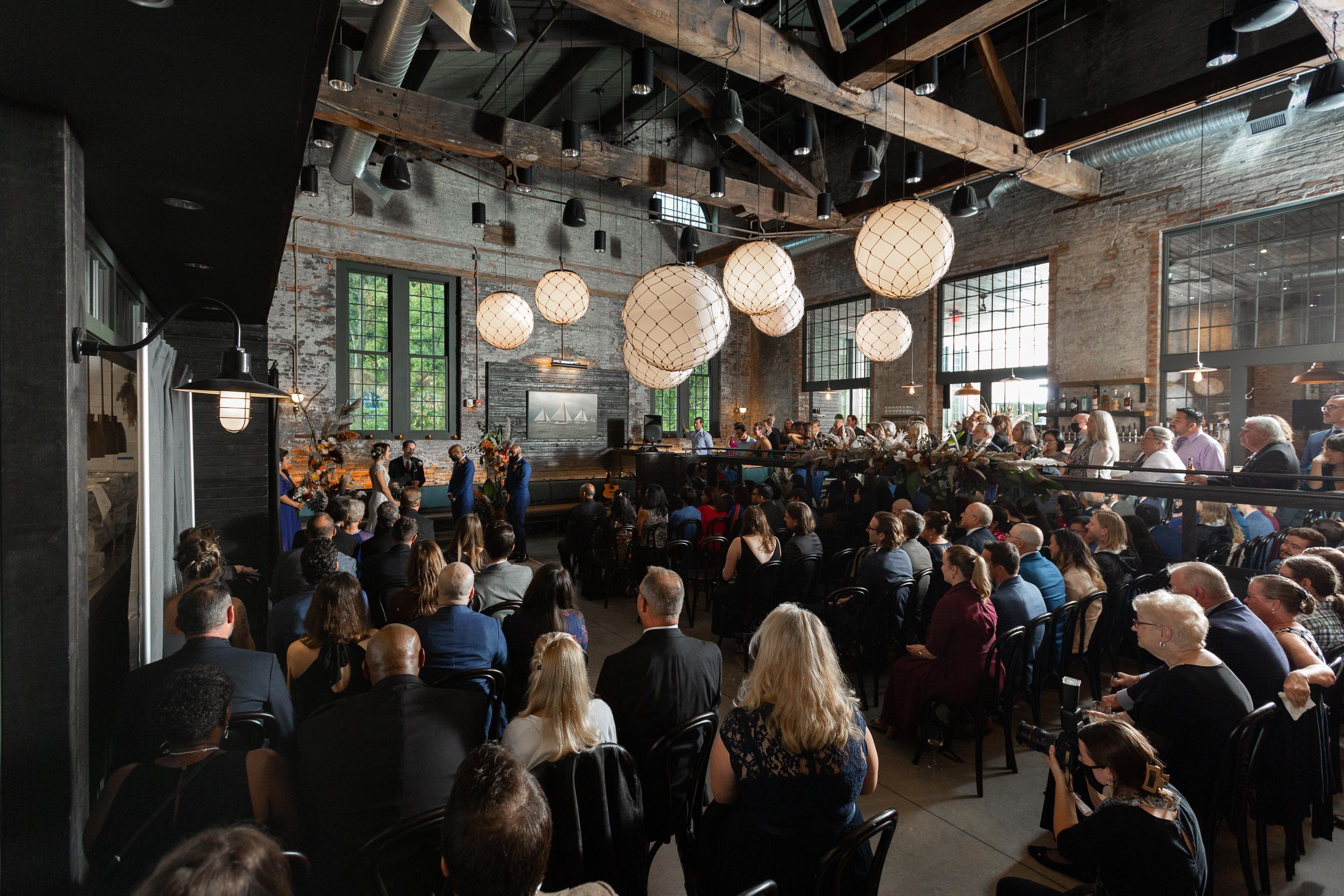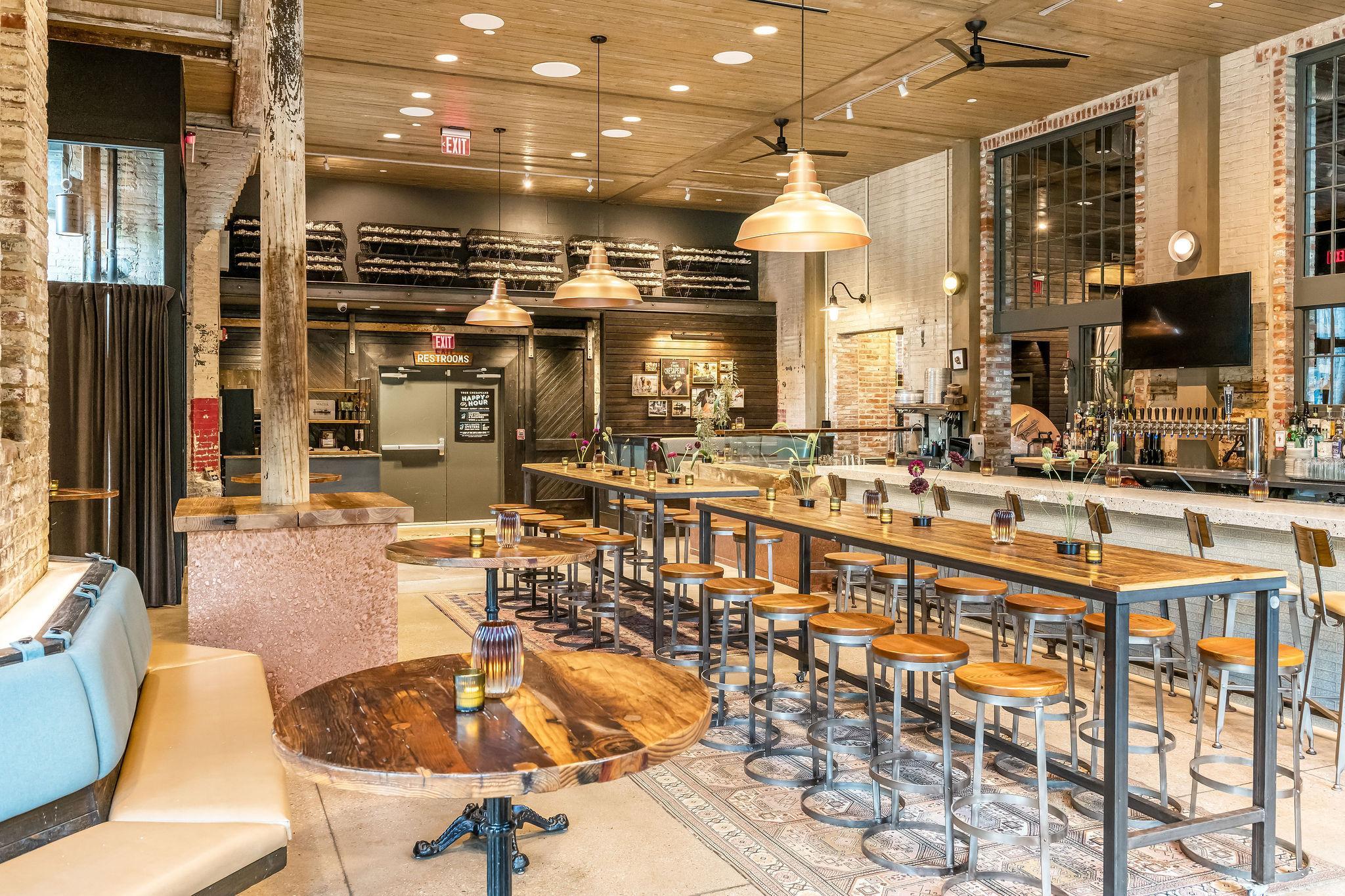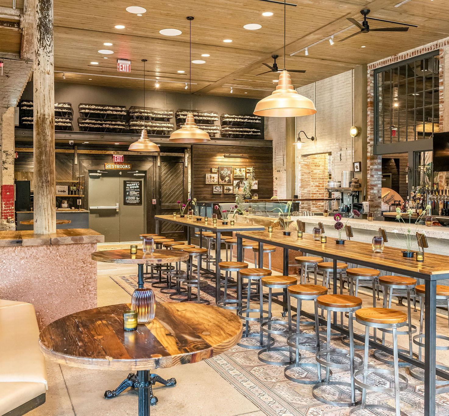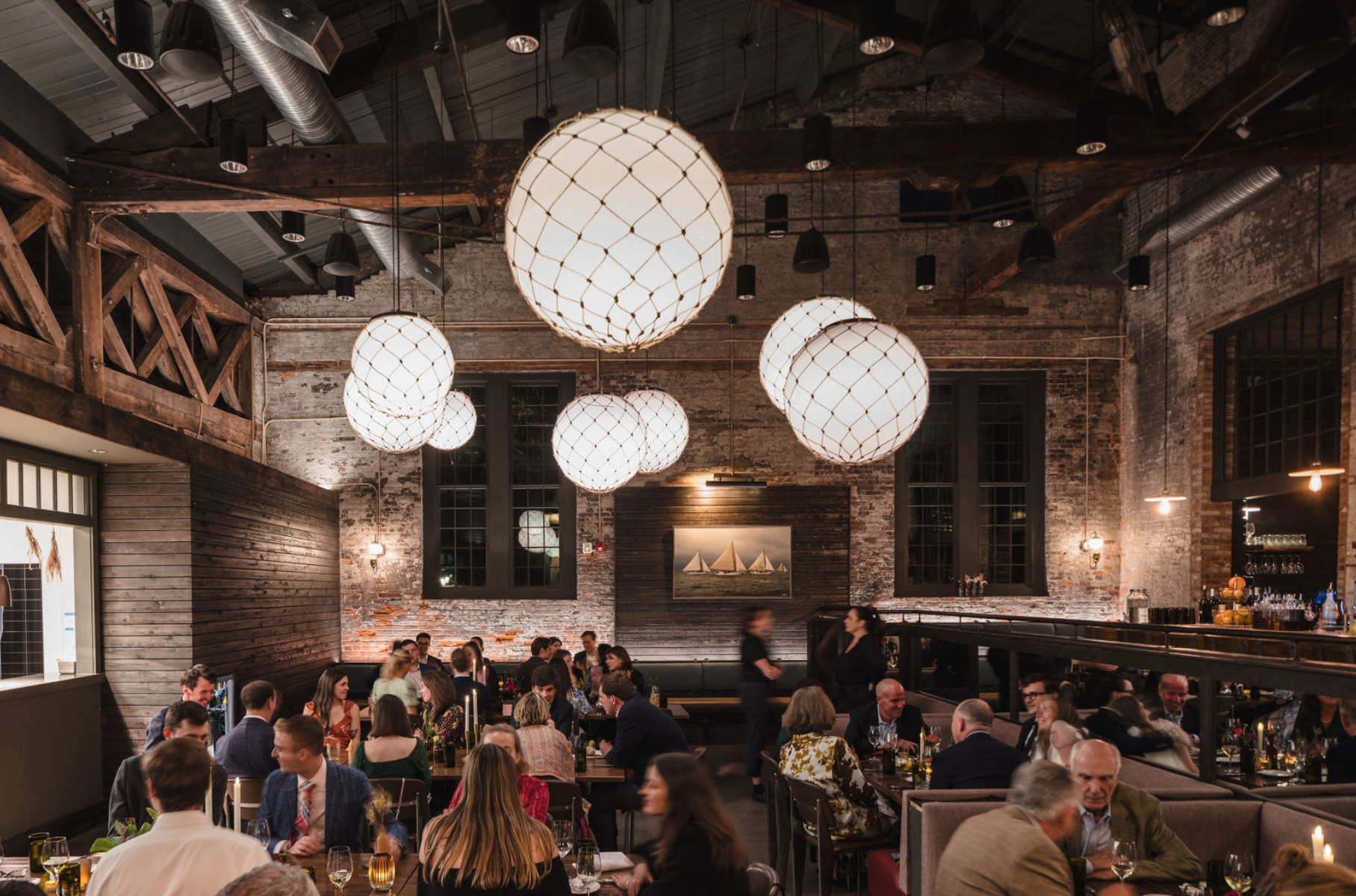 Our smokestack room takes its name from the prominent smokestack that crowns the restaurant. This semi-private area provides a relaxed lounge atmosphere, featuring high-top tables and booth seating. Guests can enjoy views of the raw bar and the private bar, which is equipped with two TVs. The Smokestack is perfect for a cocktail hour, after party, welcome party, wedding shower, and more!