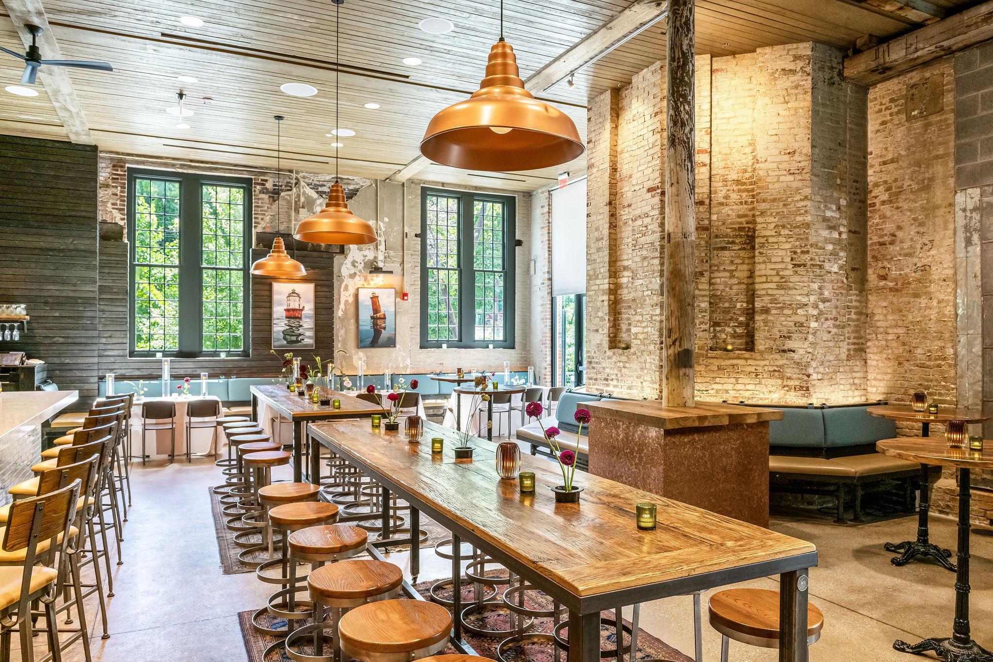 True Chesapeake features three distinct spaces: the Terrace, the Smokestack Room, and the dining room. Together, they offer a maximum seating capacity of 212 when all spaces are utilized.
