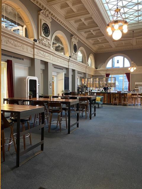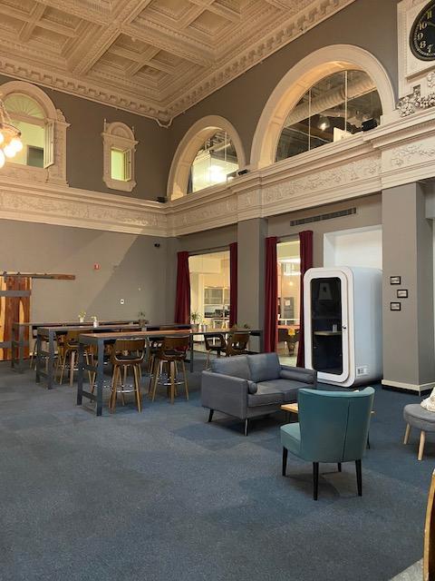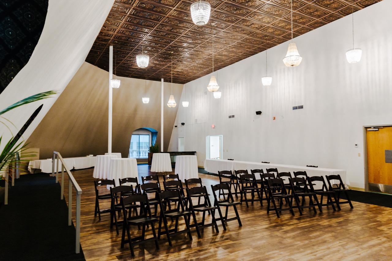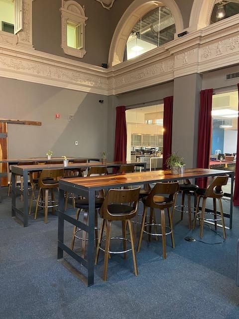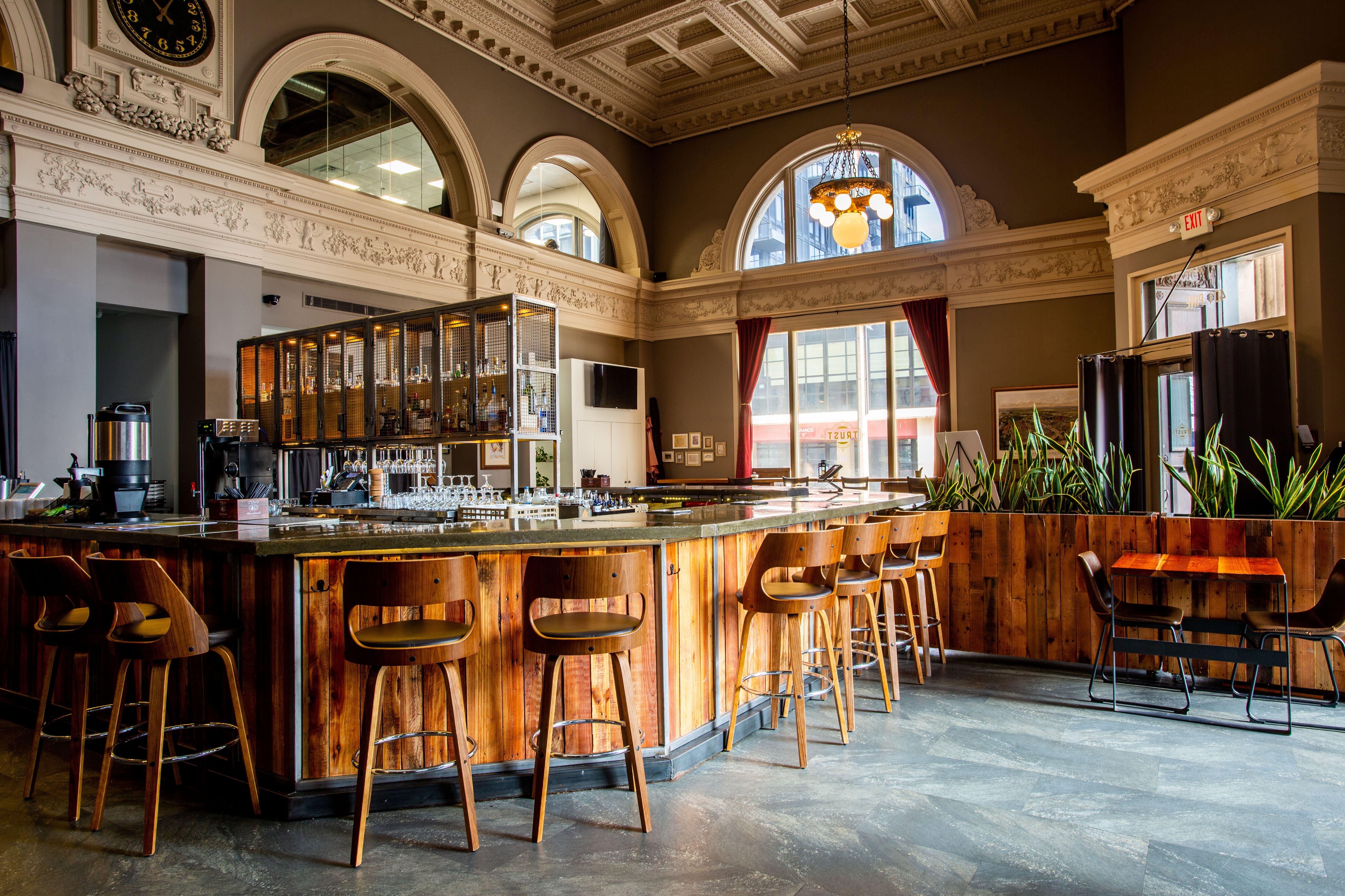 Bring a WOW factor to your event from the moment your guests step through the majestic doors of Trust. Floor-to-ceiling windows drench the space in light by day or lend a romantic ambiance in the evenings. The original coffered ceiling provides a gorgeous landscape of scrollwork detail and egg-and-dart ornamentation across the open convertible floor plan.