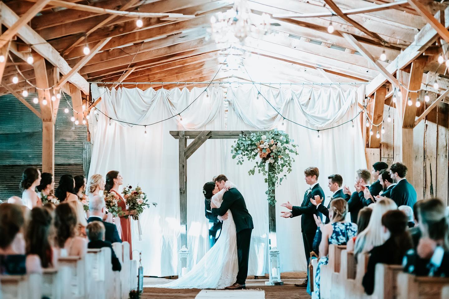 For Brides & Grooms who are looking for an intimate and affordable Ceremony with the look and feel of a more extravagant wedding, our “Mini-mony” option might be the perfect fit! This packages offers two-hour access to our 80 year-old, 6,000 sq. ft., honey-hued poplar post-and-beam Event Barn for a Ceremony only. The Ceremony area of the Barn is sweetly appointed with vintage church pews and rustic decor. *Optional "Add-On" for an outside Ceremony or "Mini-reception" in the Event Barn.
