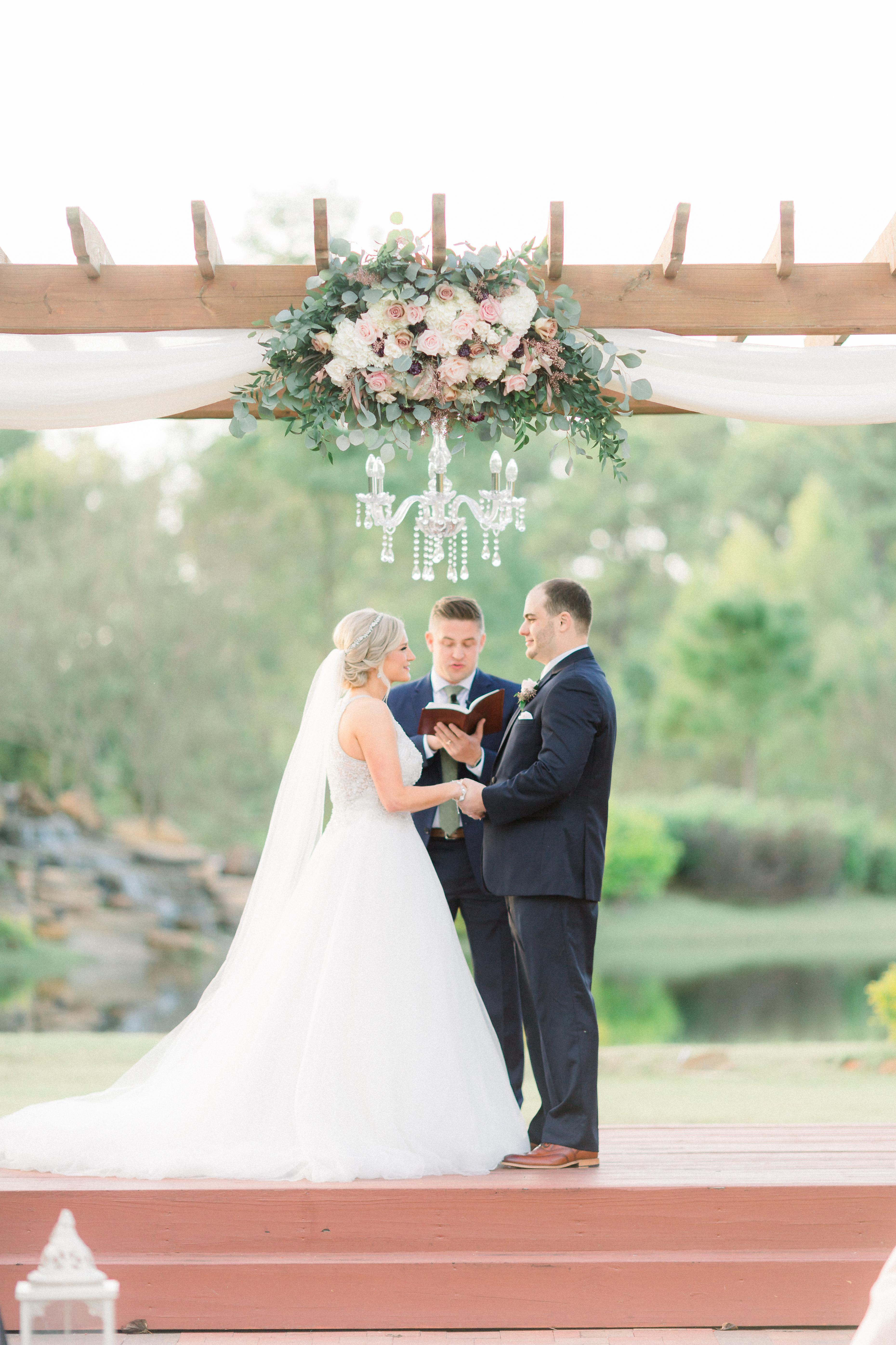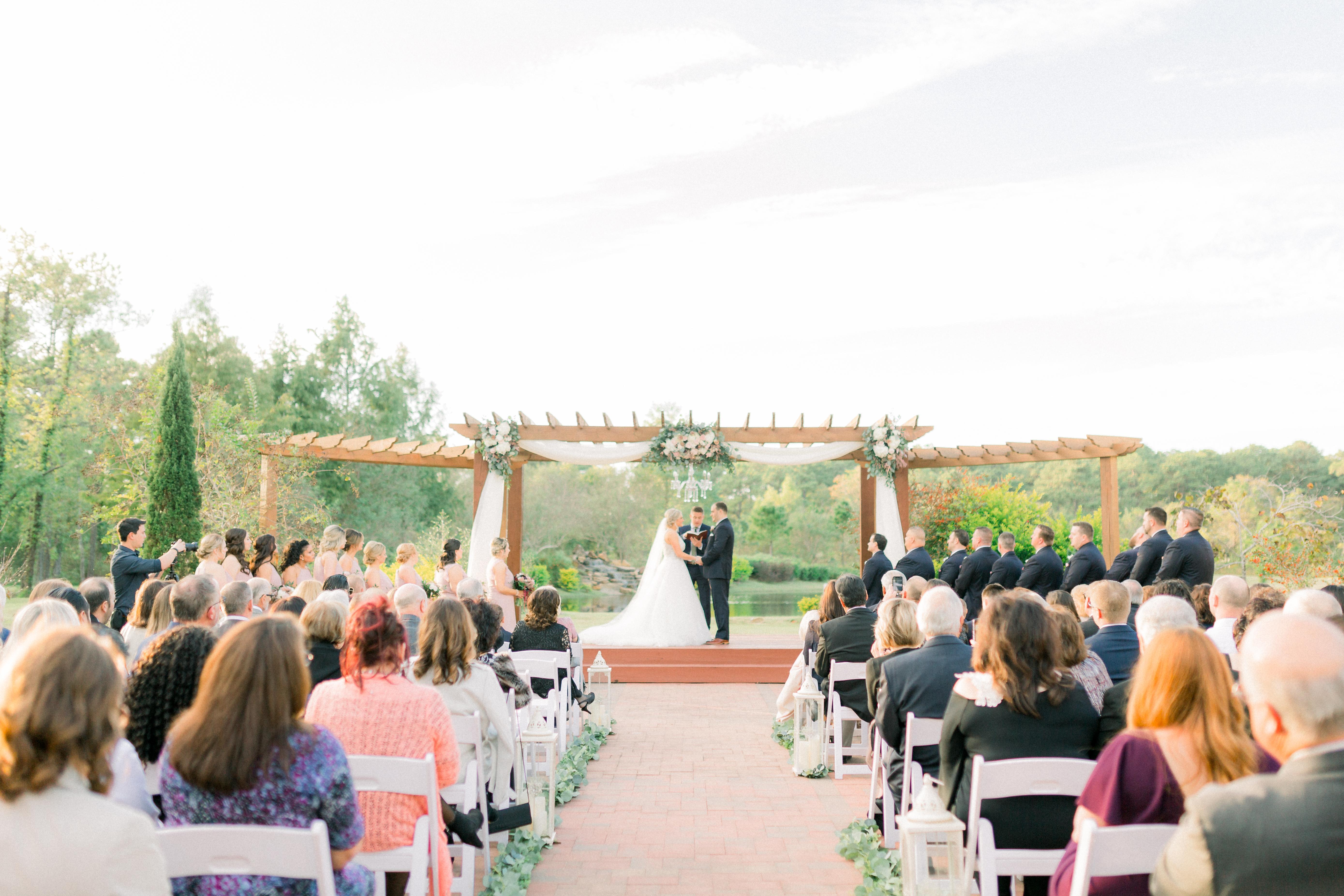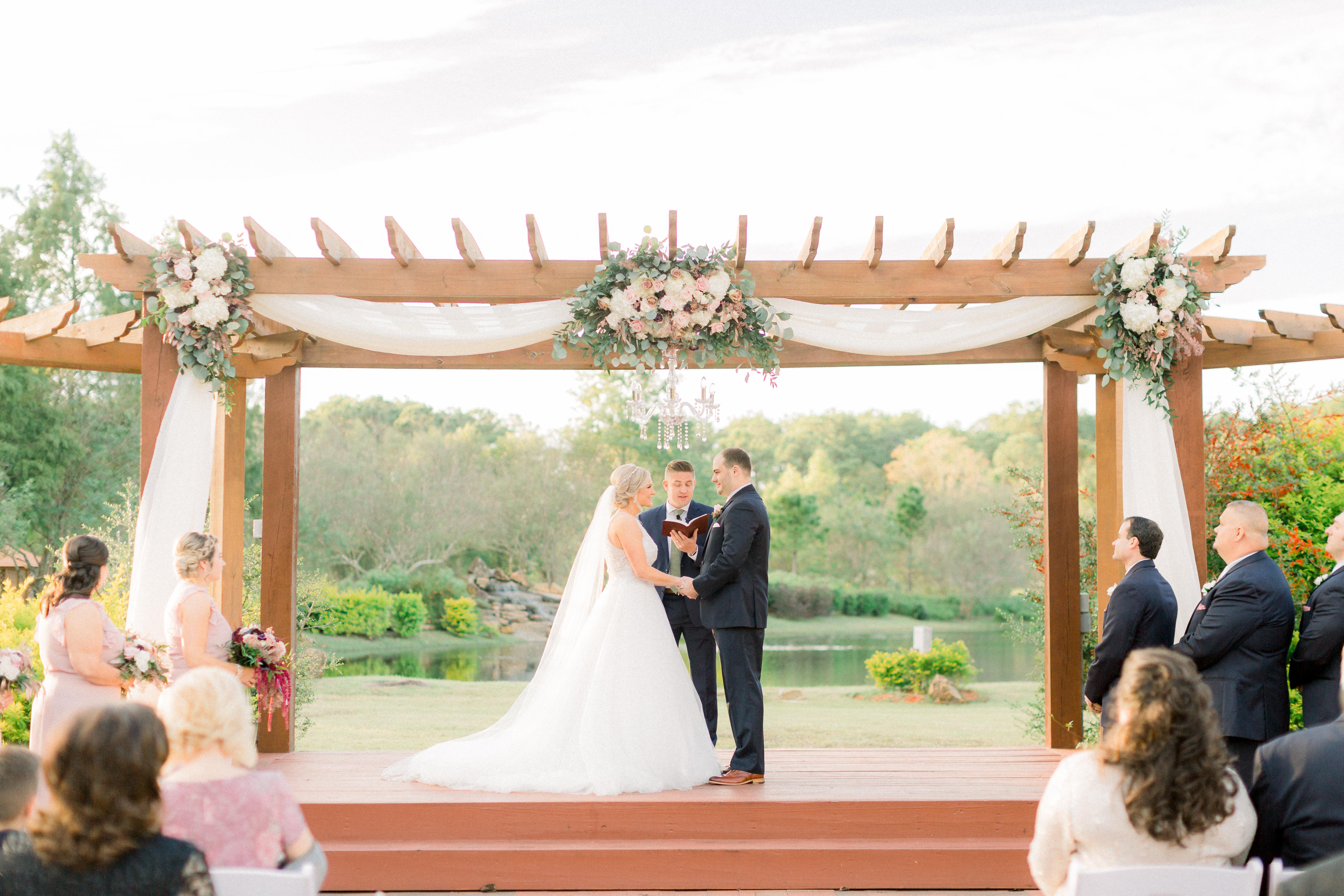 Paved with stone bricks and outlined with beautiful cypress trees and landscape, The Courtyard provides the perfect setting for your outdoor wedding ceremony! A wooden pergola frames an outstanding view of the pond, waterfall, and woods, providing a picturesque backdrop to your sunset ceremony! If you’re getting married in a church, The Courtyard can be used for an amazing cocktail hour location instead!