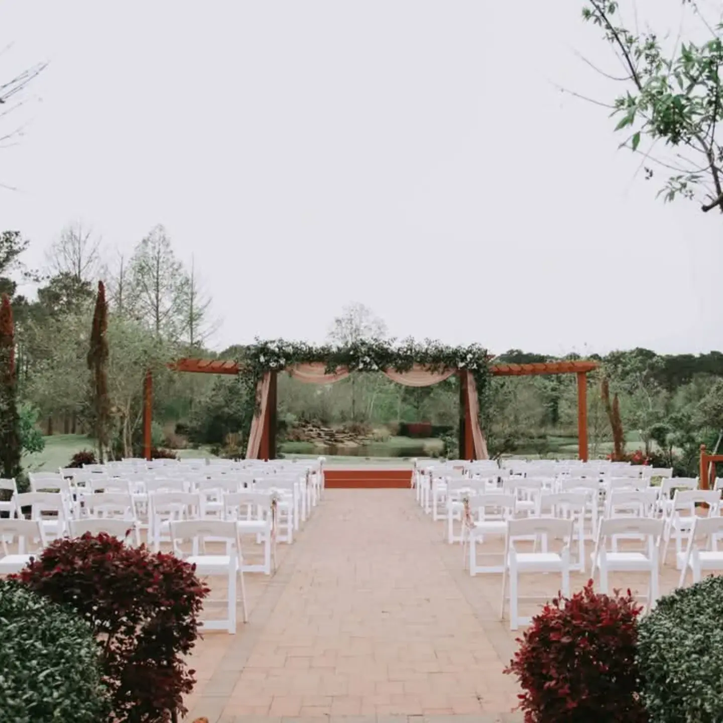 - Outdoor Ceremony Location - White Garden Chairs for your guests - Antique Sign-in Table - Wedding Coordinator